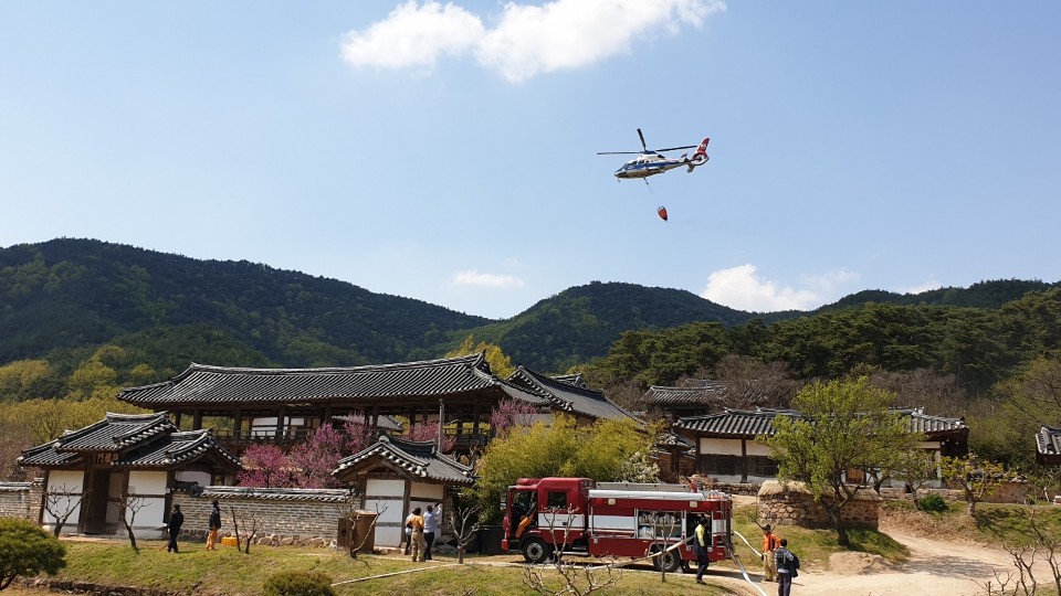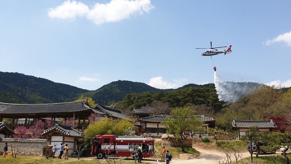 산불이 잦아든 오늘 그네들이 전한 소식을 보니, 대처는 생각보다 훨씬 더 처절했다. 24일 안전상황실을 운영하기 시작한 데 이어 경상북도·안동시 등과 협력해 소방차 2대와 인력 30명을 현장에 배치했다 하거니와, 불이 침략한 25일 이후에는 헬기를 동원해 서원 주변으로 여섯 차례 물을 뿌렸다 한다. 현장을 전하는 동영상을 보니 스프링쿨러가 연신으로 돌아가며 물을 뿌리는 모습을 봤다.