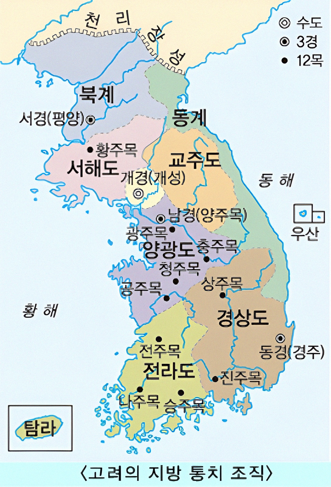 그러다가 성종14년(995)에 12주州 절도사節度使를 설치하면서 우신책군右神策軍이라 부르며 양주楊州와 더불어 좌보左輔·우보右輔로 삼았다 하거니와 이는 중국 도성제에서 흔히 보이는 수도 방비 경기 지역 편제를 본떴음을 본다.