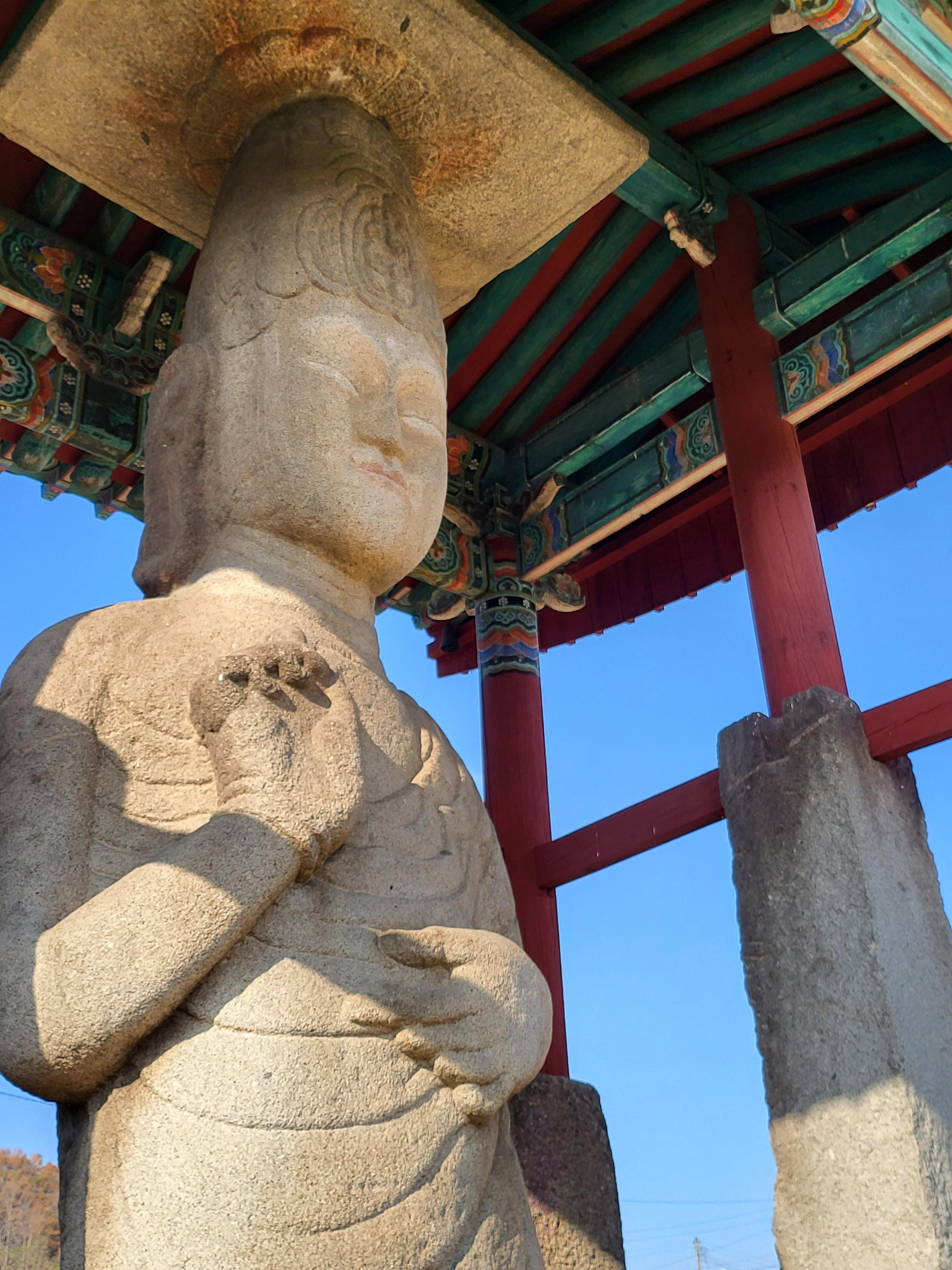 길다란 얼굴에 보관을 쓰고 있는 모습이 논산 관촉사에서 보았던 은진미륵보살과 닮았습니다.