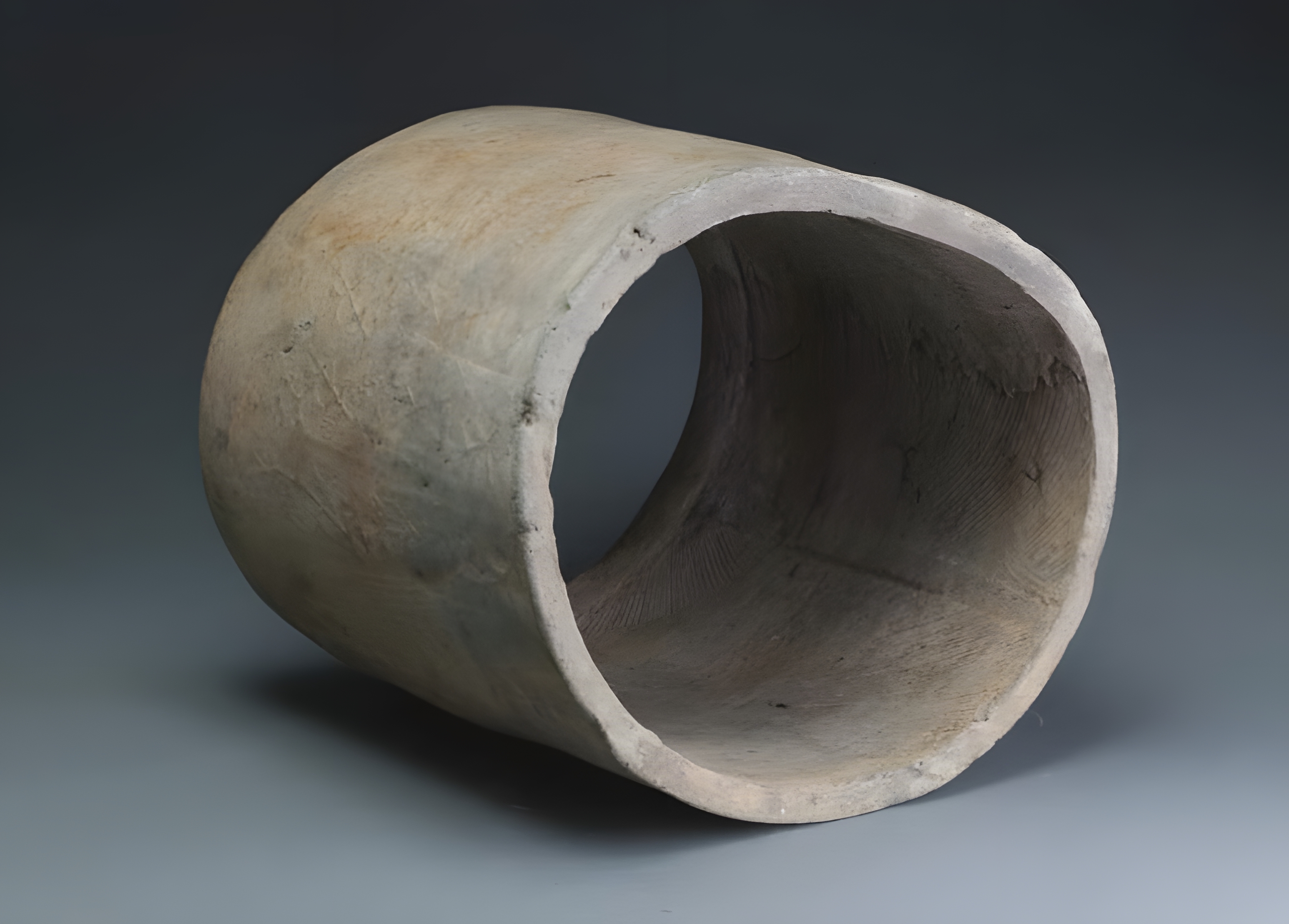 토지주택박물관 소장 통와. 통일신라시대. 외면에 덩쿨무늬가 베풀어져 있고 안쪽에는 마포흔과 사절 소지 절단흔적이 선명하다. 이걸 빗질 정면 했다고 누가 그러더만 그건 아님