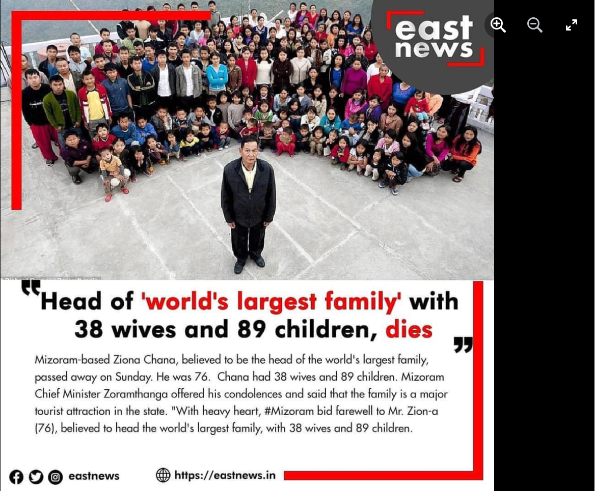 아내만 38명…'세계 최대 가족' 거느린 인도 남성 76세로 사망