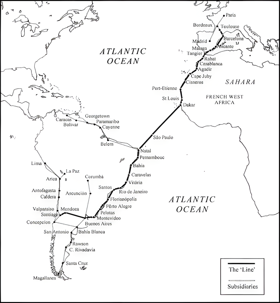 이 소설 배경이 되는 대서양 횡단 항공우편 비행 자체는