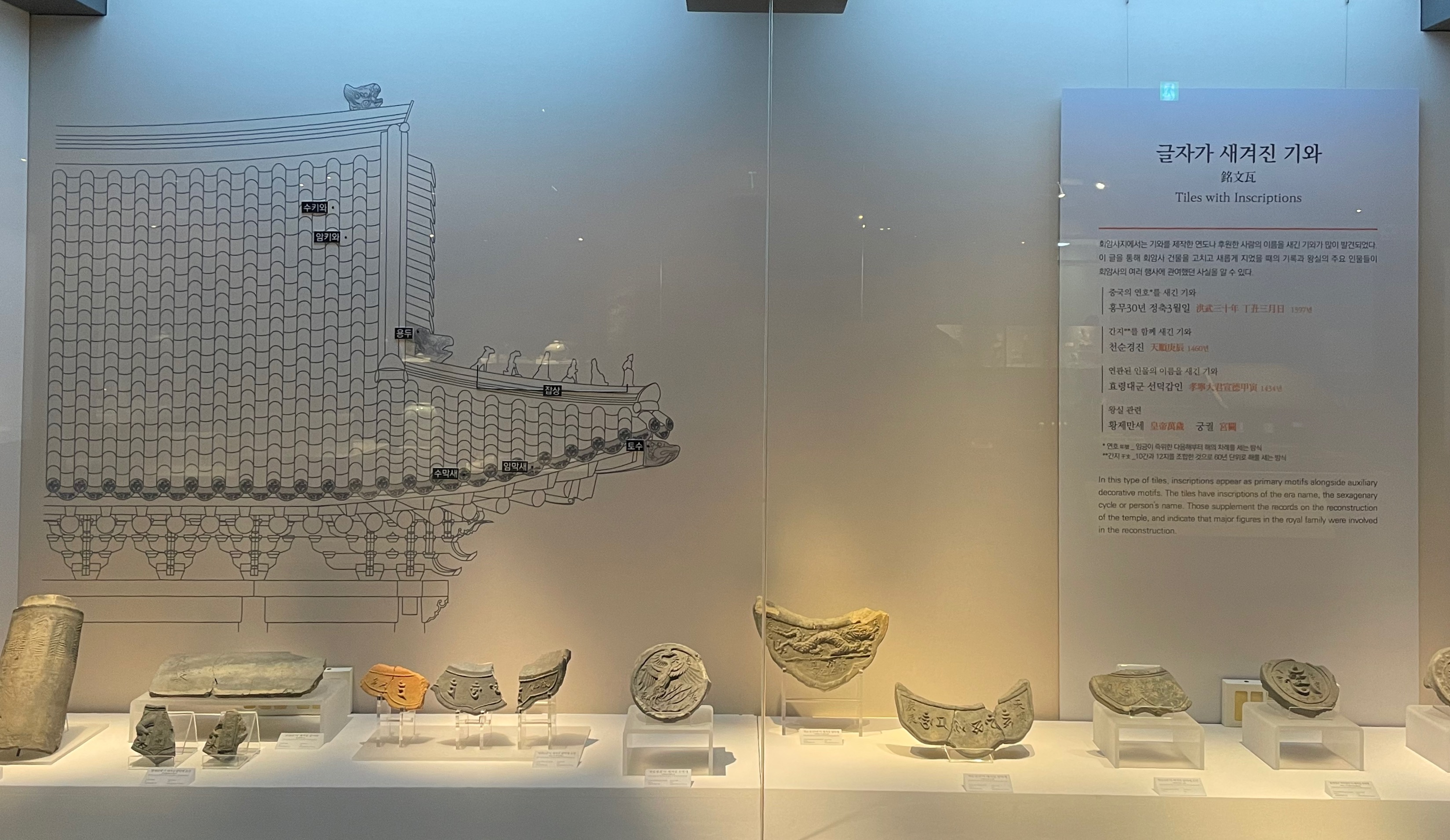 박물관에 전시된 유물은 대부분 토수, 용두, 기와편 등 당시 회암사 건물을 이뤘던 부분들이었습니다. 그렇기에 유물을 보면서 거꾸로 당시 회암사를 짐작해 볼 수 있었습니다.