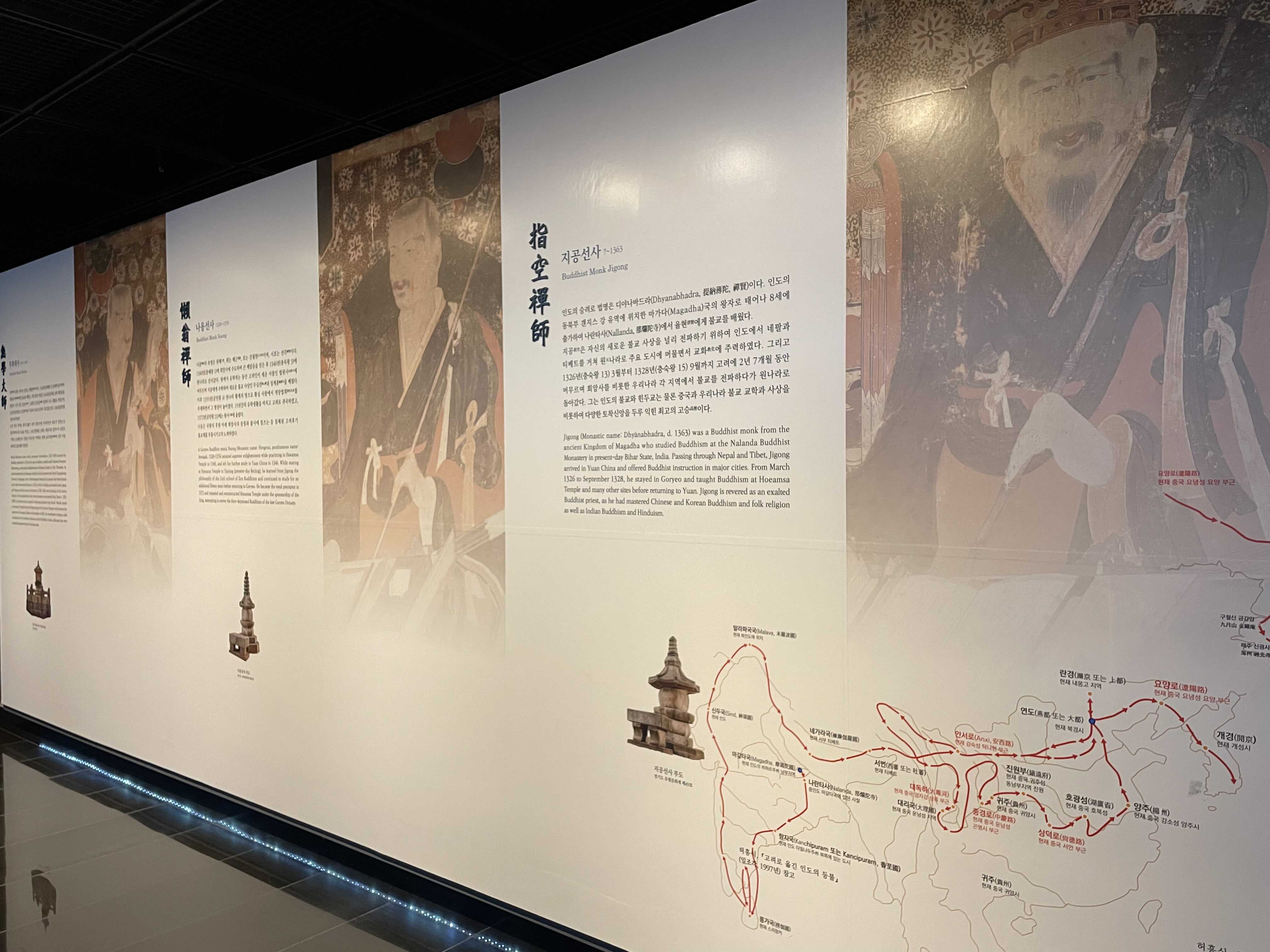 삼대화상(三大和尙)이라 불리는 지공선사, 나옹선사, 무학대사입니다. 회암사 건립과 중창에 지대한 연관이 있는 분들이고, 지금 회암사지터 위쪽으로 세 분의 부도가 있습니다.