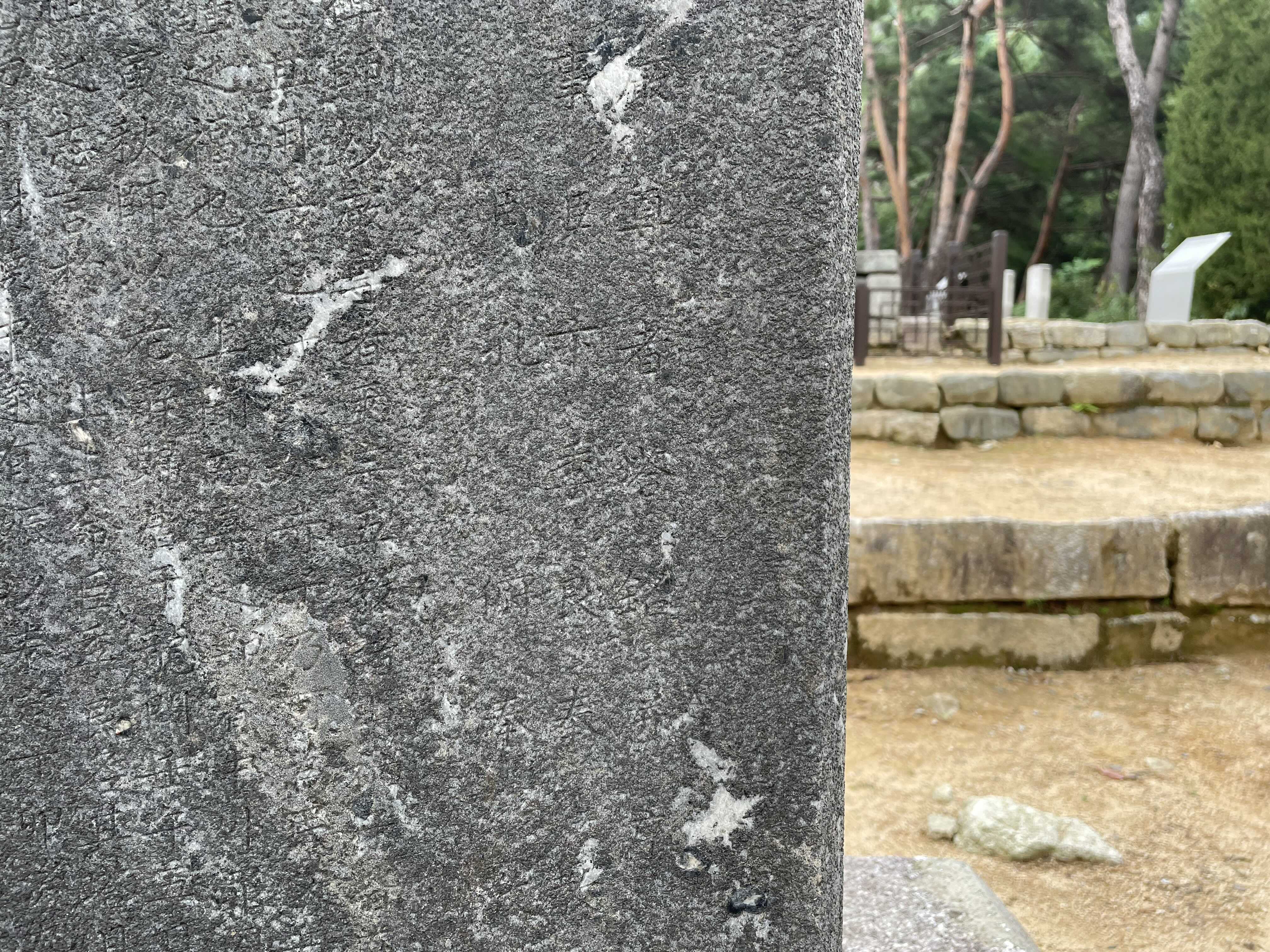 무학대사비와 비 왼쪽(현재 사진에서 바라보는 방향)에 있는 것은 최초의 비석에 사용되었던 석재입니다.