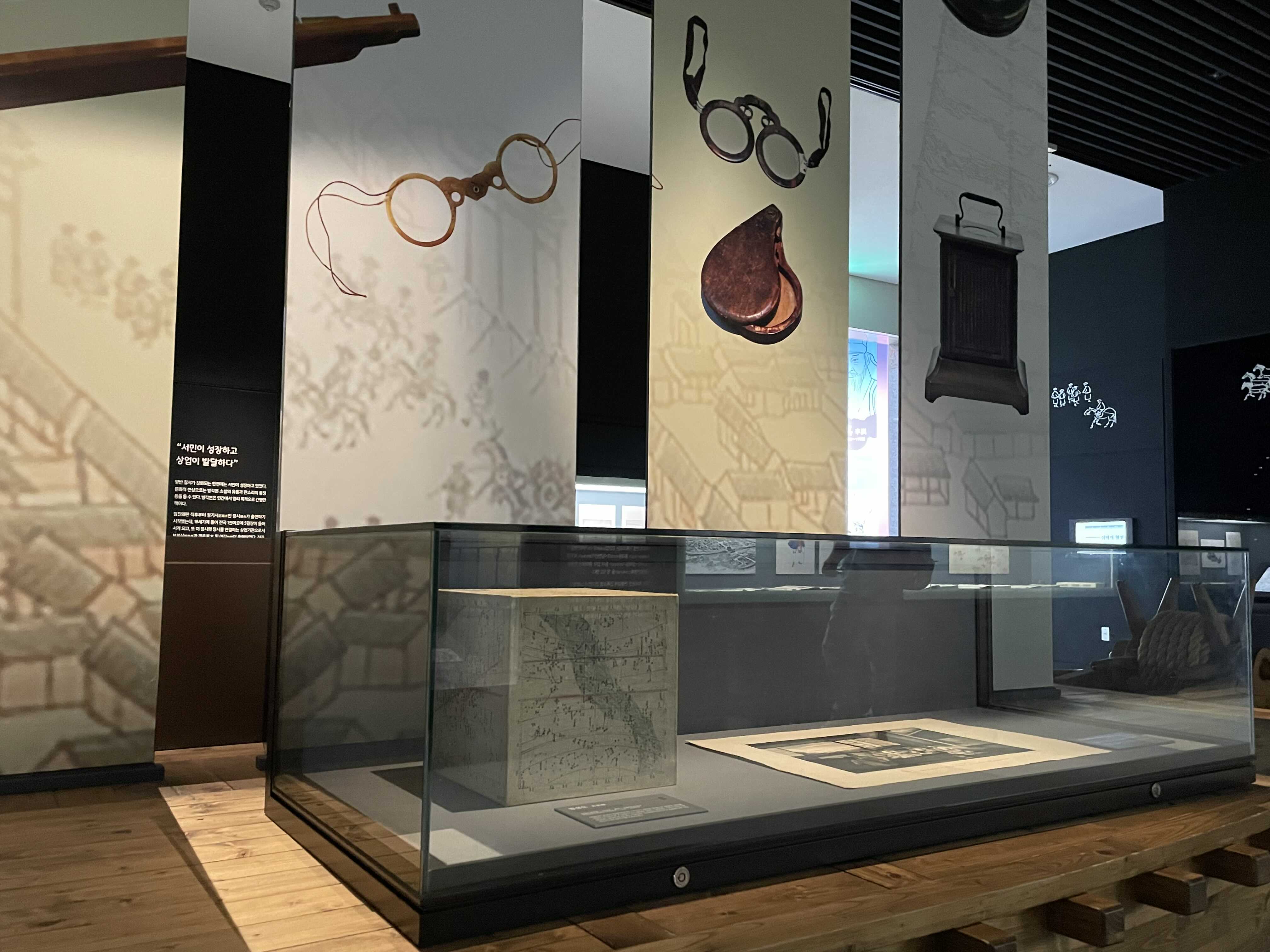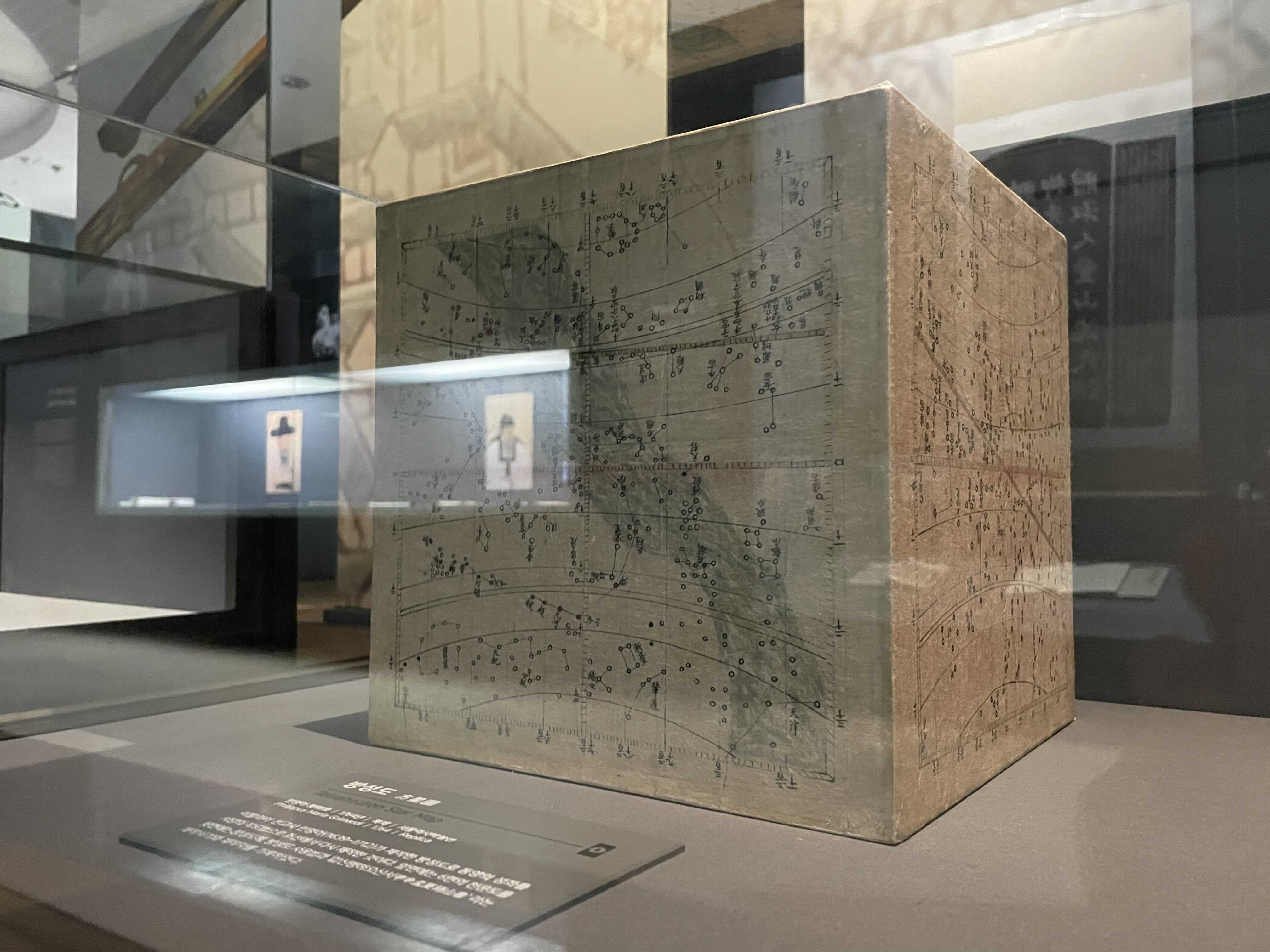전시장 유리에 반대편 모습이 비쳐 마치 증강현실처럼 사진이 나왔군요. 육면체로 된 유물이라 뒷면도 보고 싶었는데, 아쉬웠습니다. 바닥면에도 그림이 있을까요?