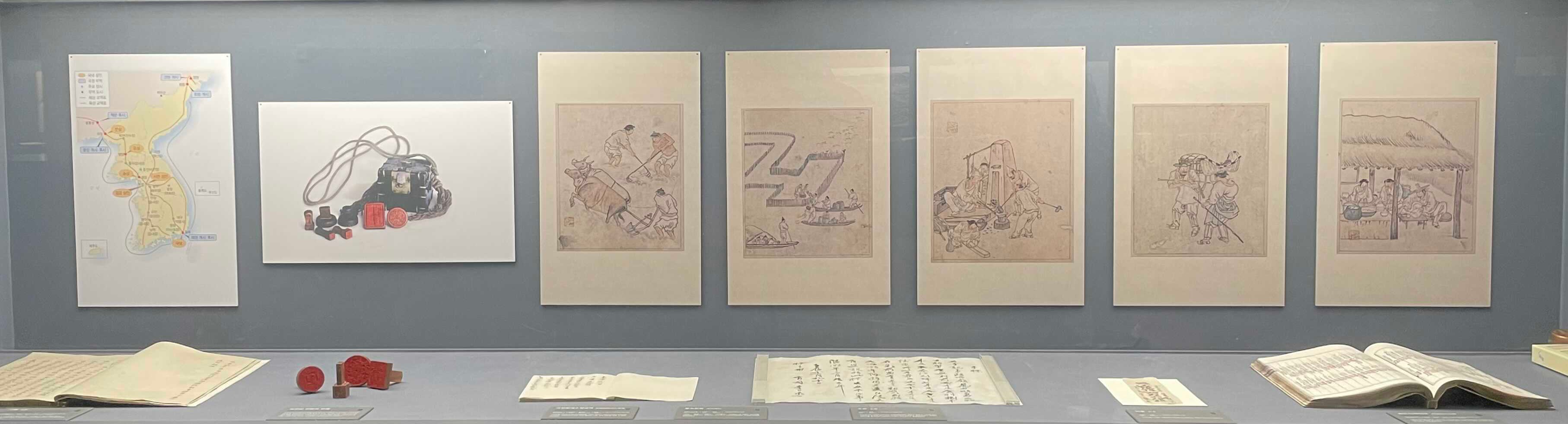 전시를 보면서 계속 생각했던 점은 이런 문서, 책, 지도 등 납작한 지류 유물을 어떻게 전시하면 의미가 전달이 잘 될까 였습니다.