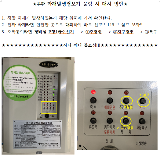 오늘은 화재수신기가 오작동 했을 경우 어떻게 처리하는지 동영상으로 찍어 직원들에게 공유했다.