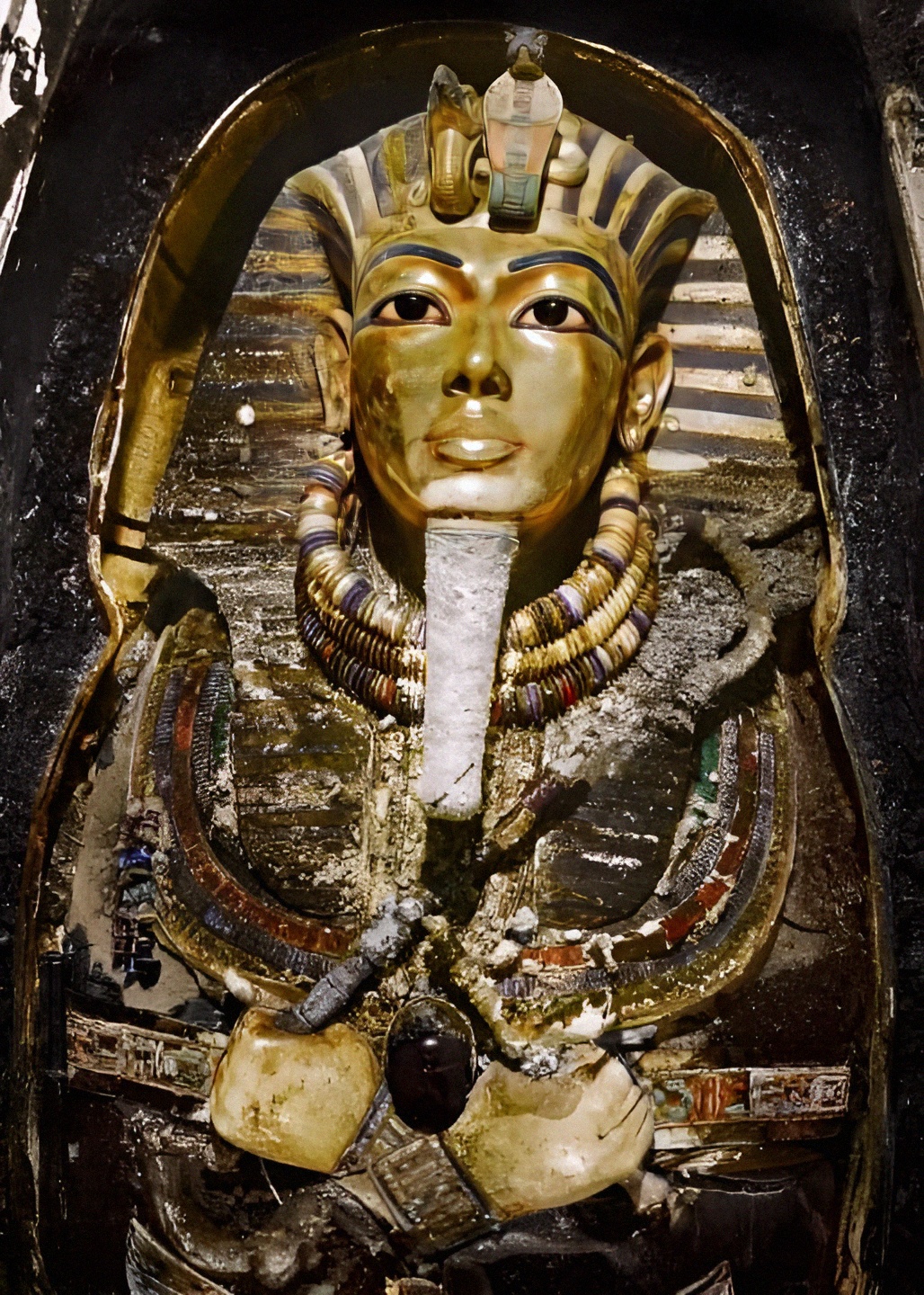 1922년 하워드 카터 Howard Carter가 발굴할 당시 투탕카멘 황금가면 Tutankhamun’s burial mask이다.