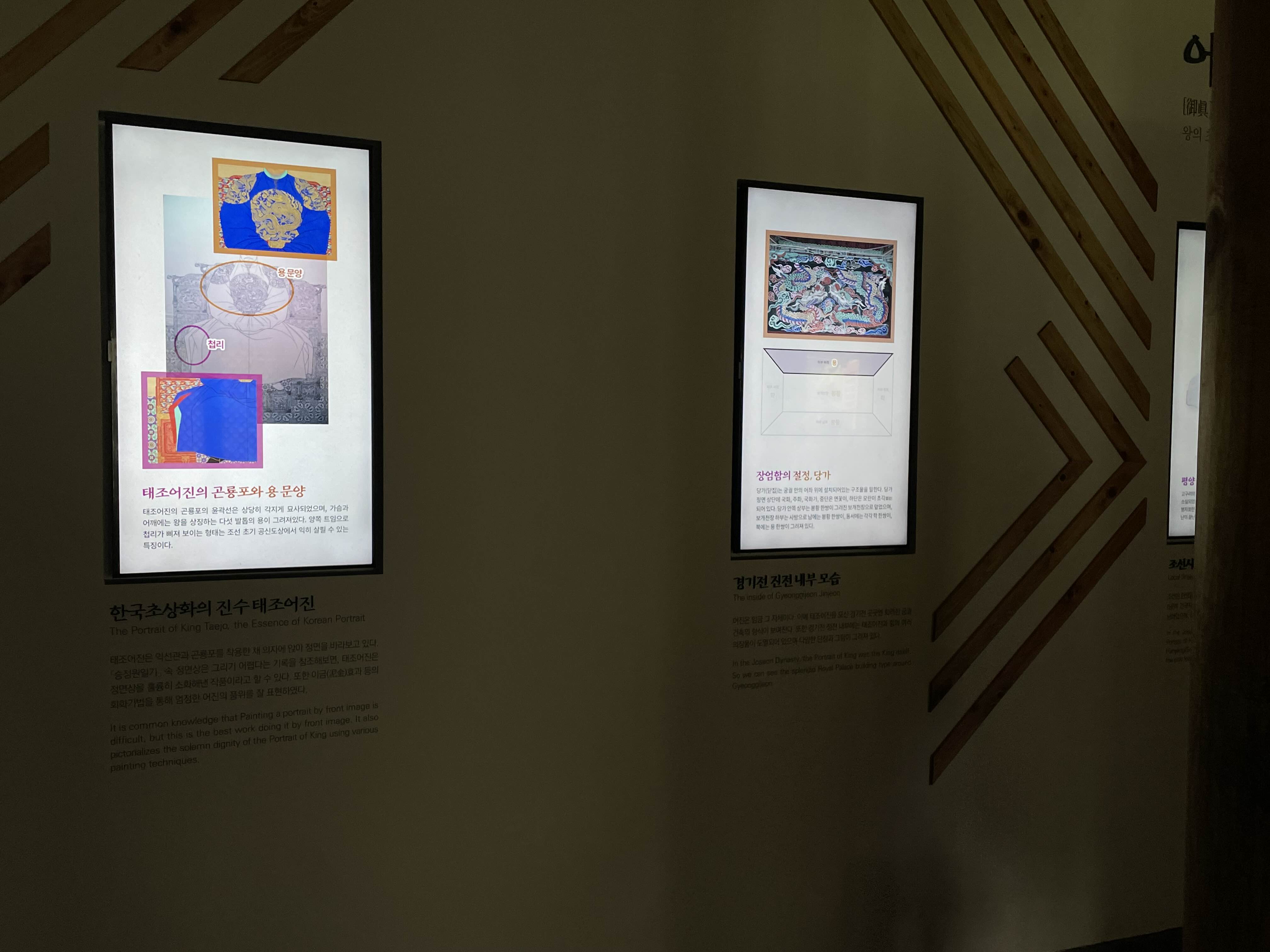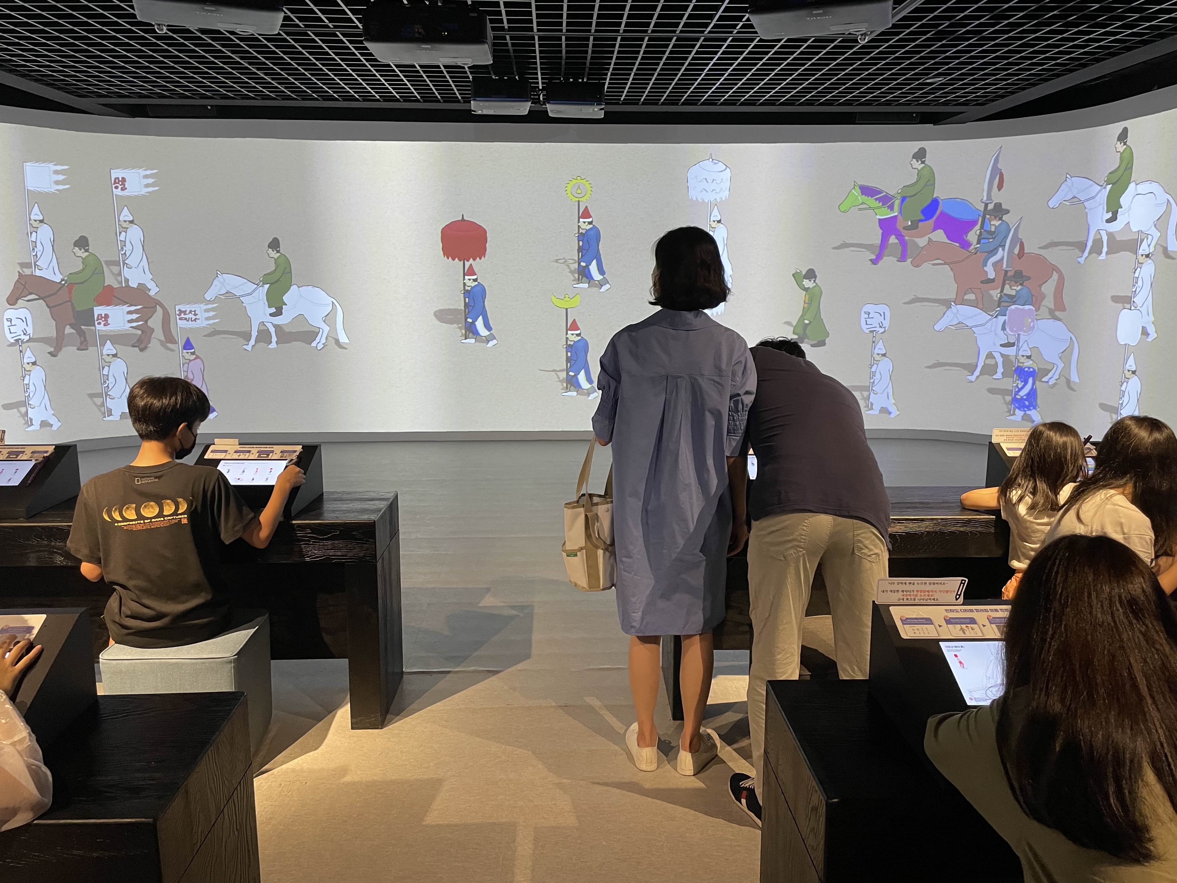 평평한 어진을 좀 더 입체적으로 볼 수 있게 영상, 디오라마+영상맵핑, 디지털 체험(어진반차도 그리기, 어진 컬러링) 등과 같이 기획한 전시가 인상적이었습니다.