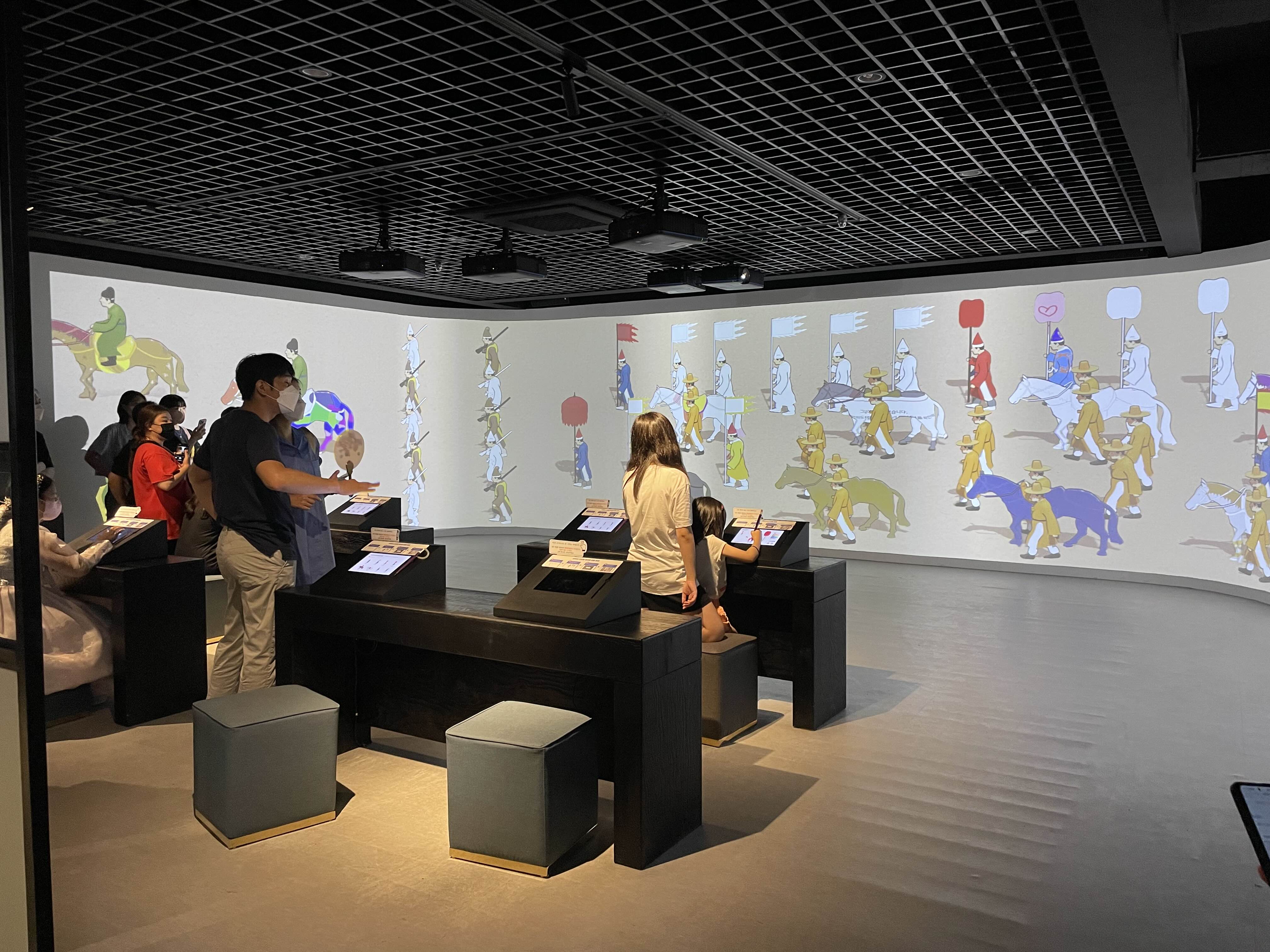 원 디오라마는 어진행차를 담은 모습이었는데, 여기에 스토리가 있는 영상을 맵핑하여 죽어있는 디오라마가 살아있게 느껴졌습니다. 내용은 어진이 전주까지 오는 과정을 담았습니다.