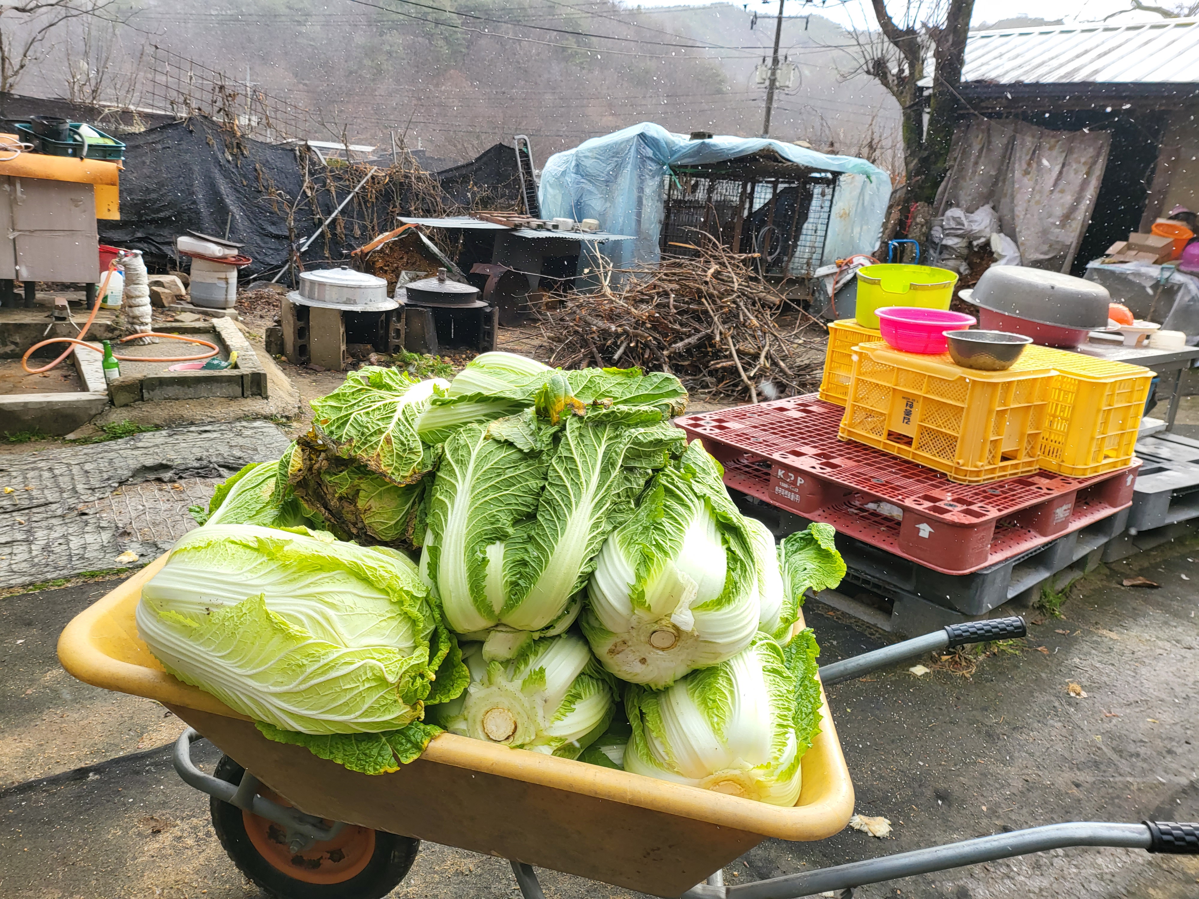 마침 잘 됐으니 오늘부터 이른바 최강 한파라 해서 배추를 뽑아야 했으니 그거 손수레로 싣고 날았다.