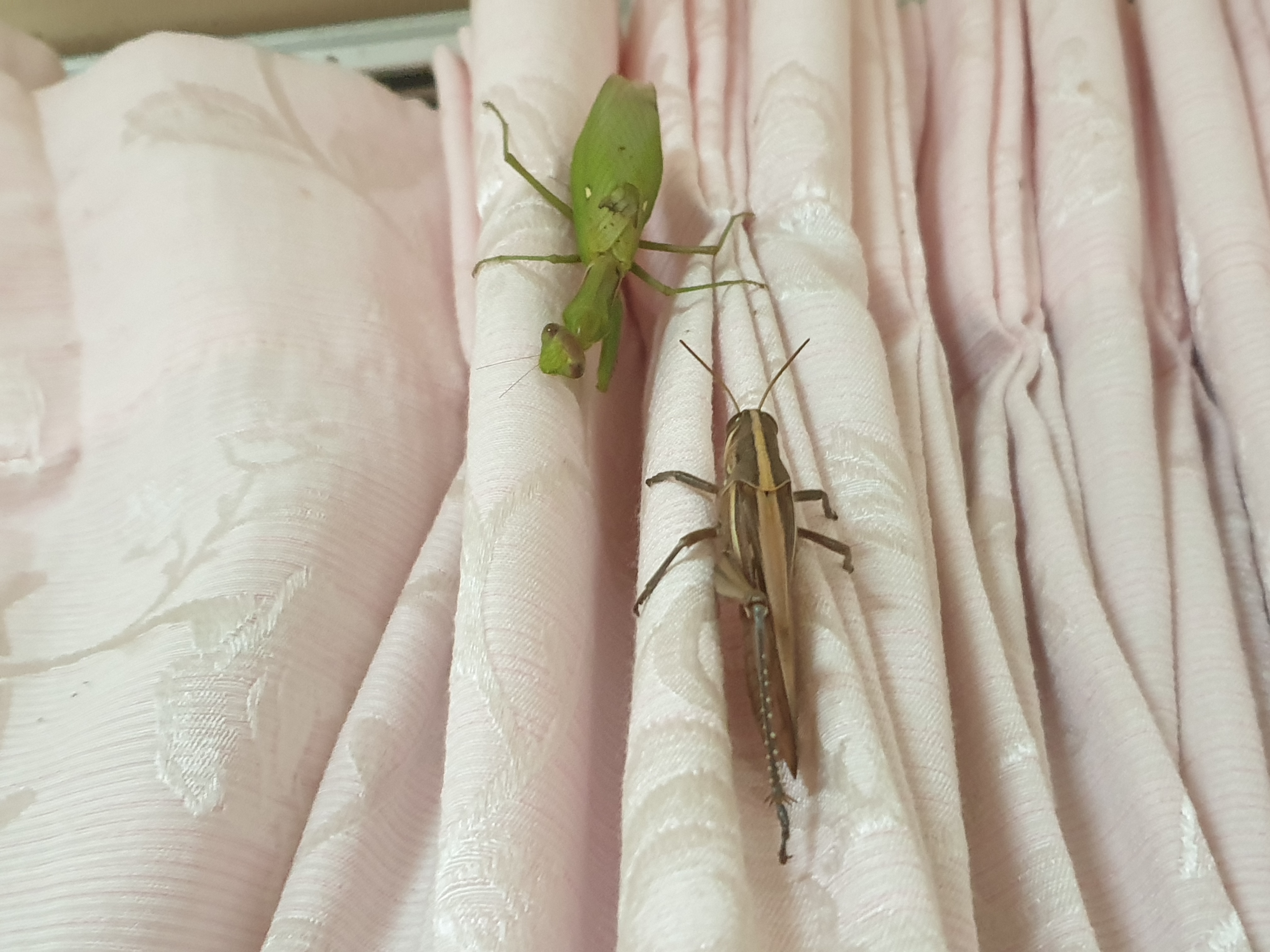 아들놈이 집에 들어서자마자 가방에서 뭔가를 꺼내는데 보니 넓적배사마귀 두 마리라 그래 그 버릇 어디가겠는가?