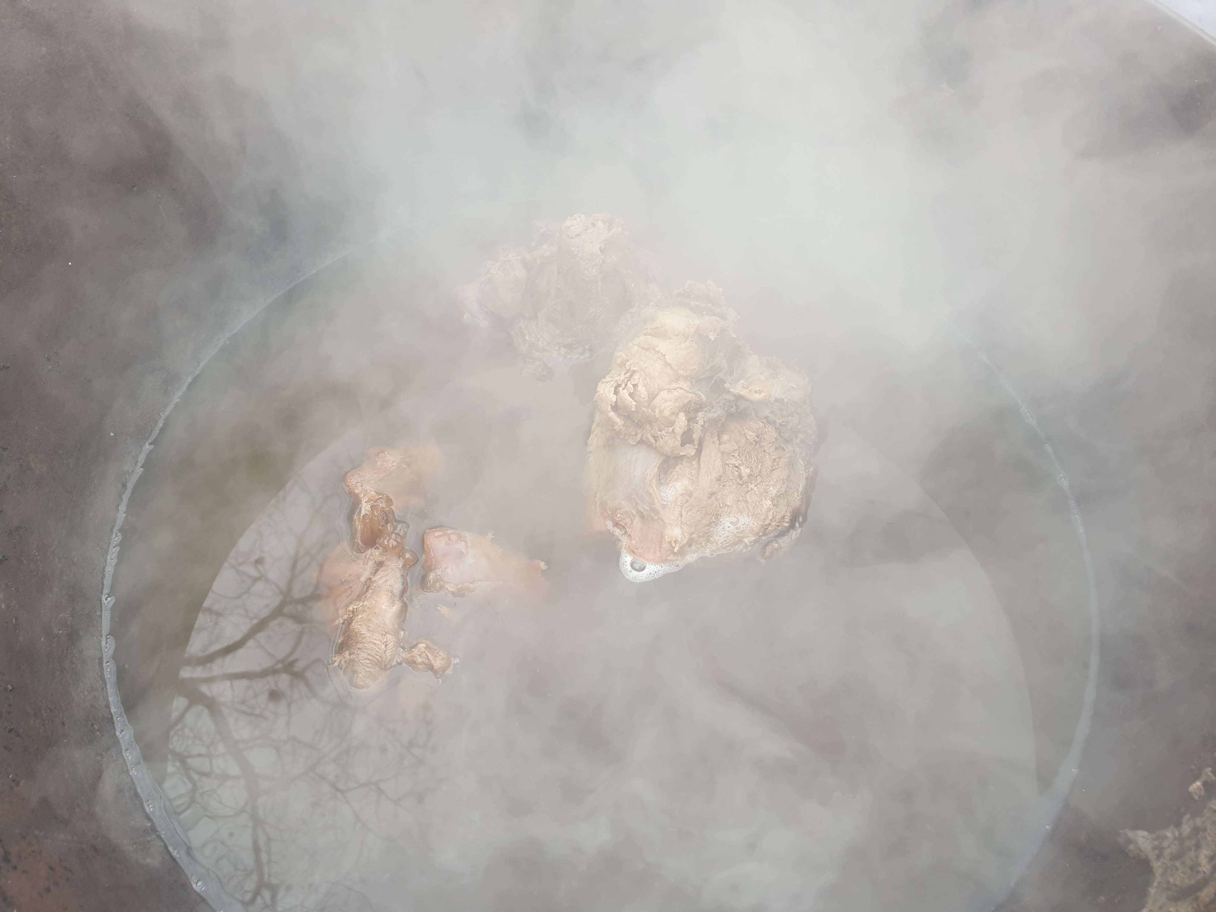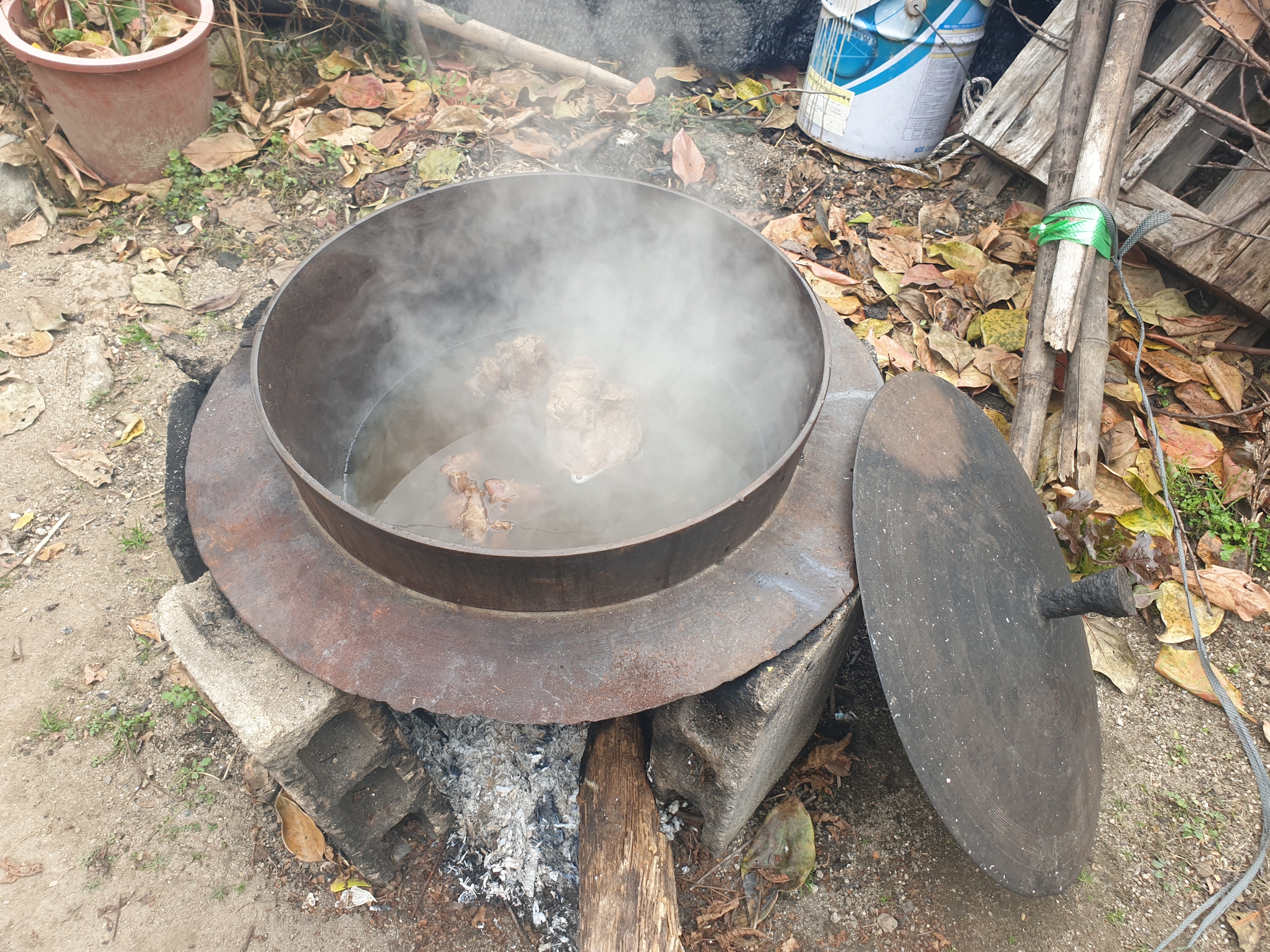 노모 생신이 다음 주중이라 미리 내러온 것인데 들어서니 마당에서 솥에다가 무언가를 끼린다.