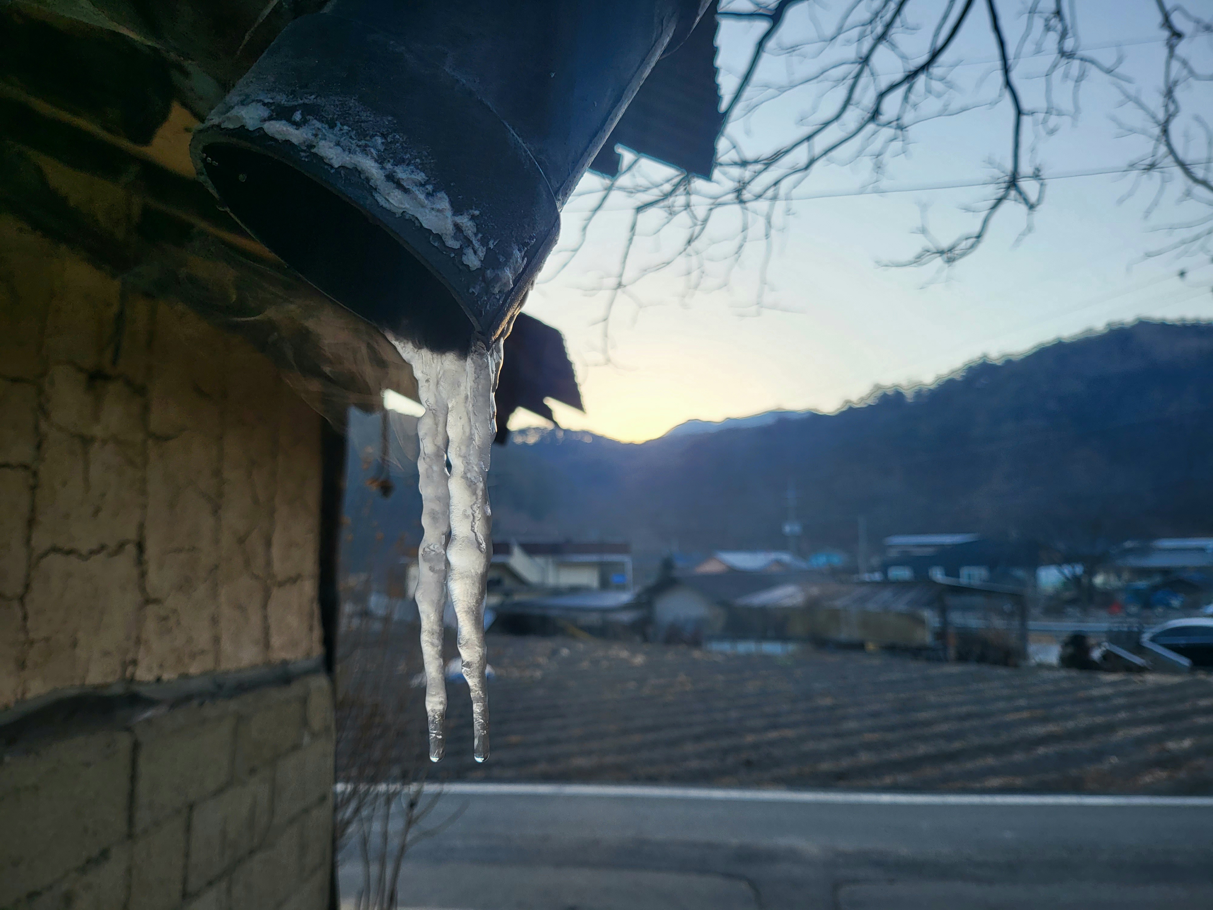 엄마방 연탄 굴뚝에 늘어진 고드름
