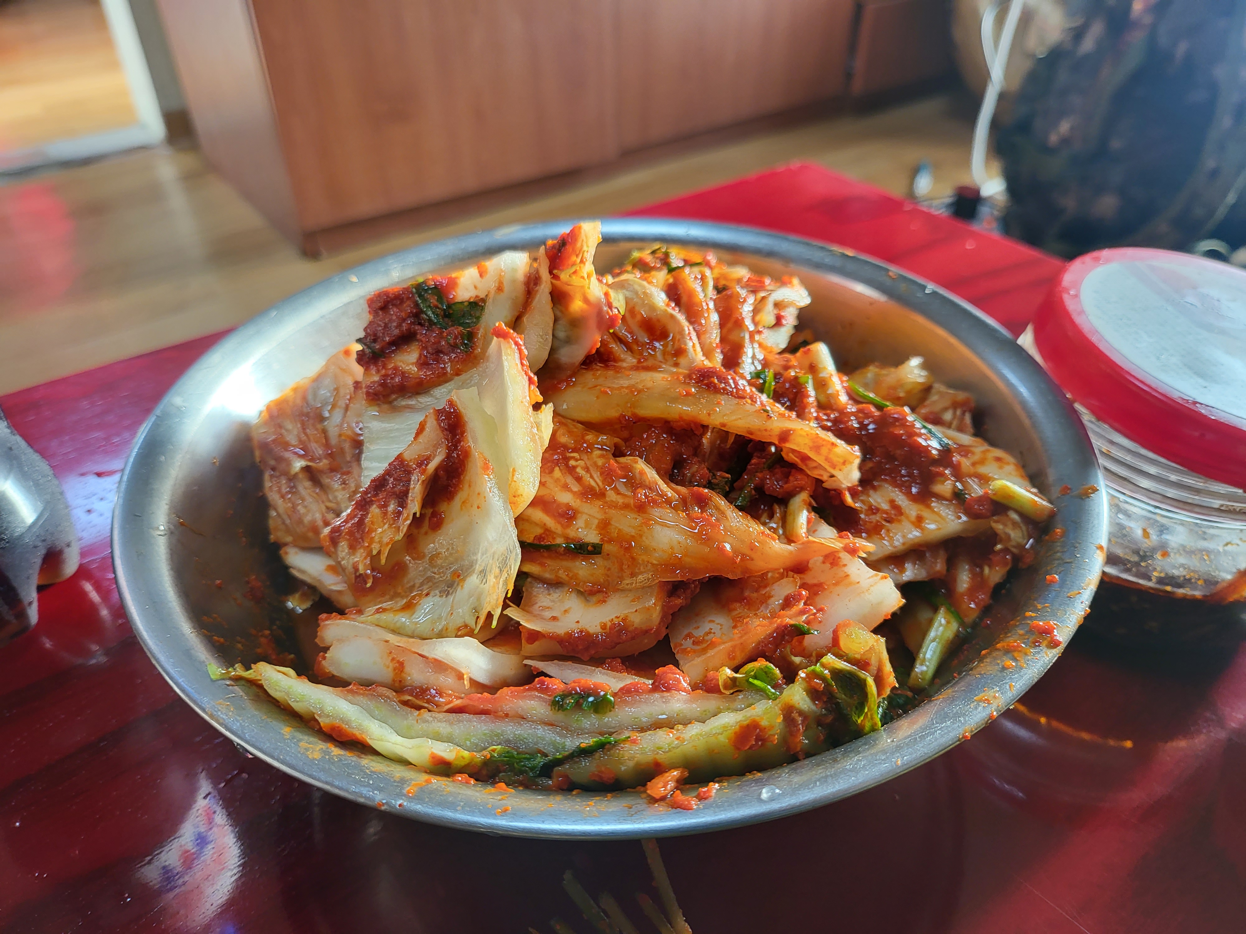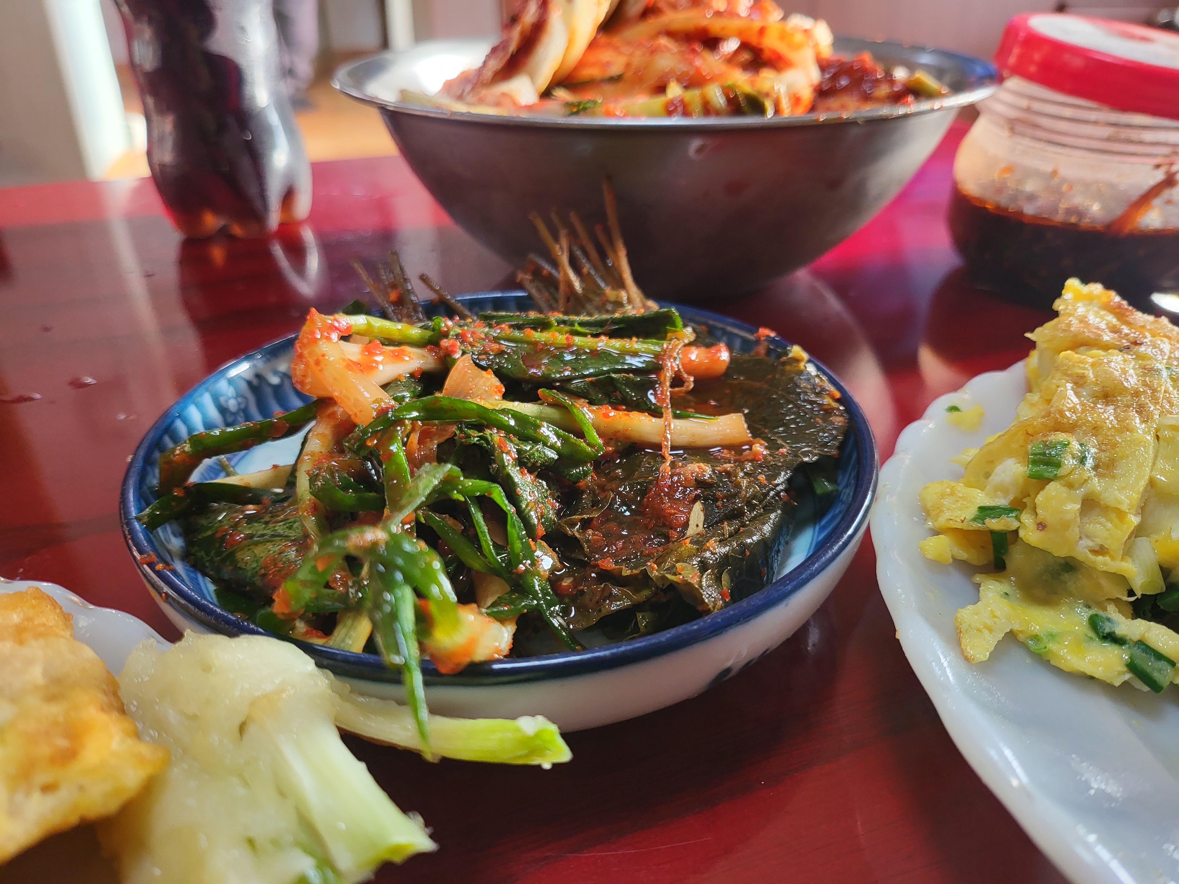 김장김치 파김치 얹어 먹는다.