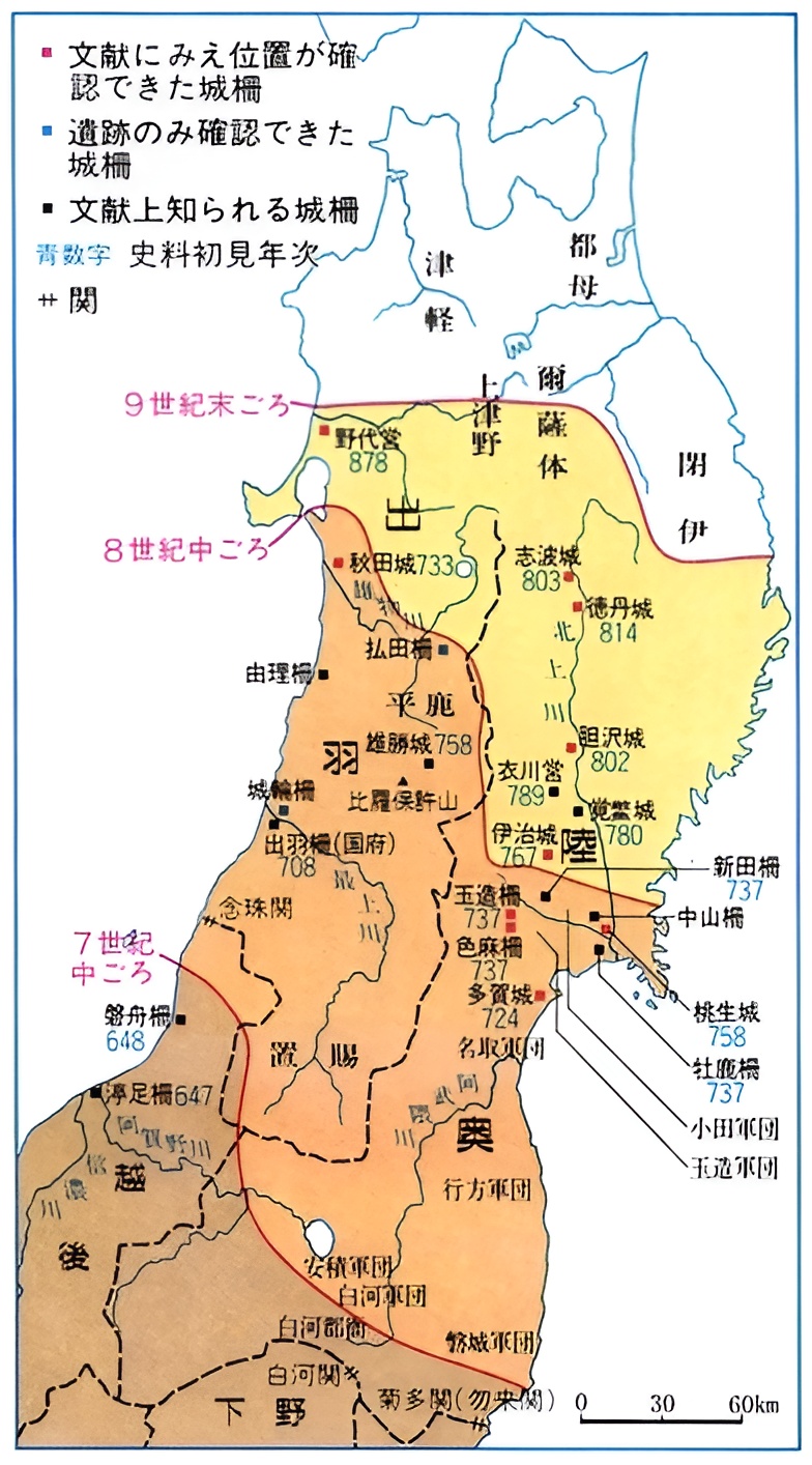 대체로 7세기에서 9세기까지 야마토 조정이 북진하면서 비로소 일본사 영역으로 들어온 땅이다.