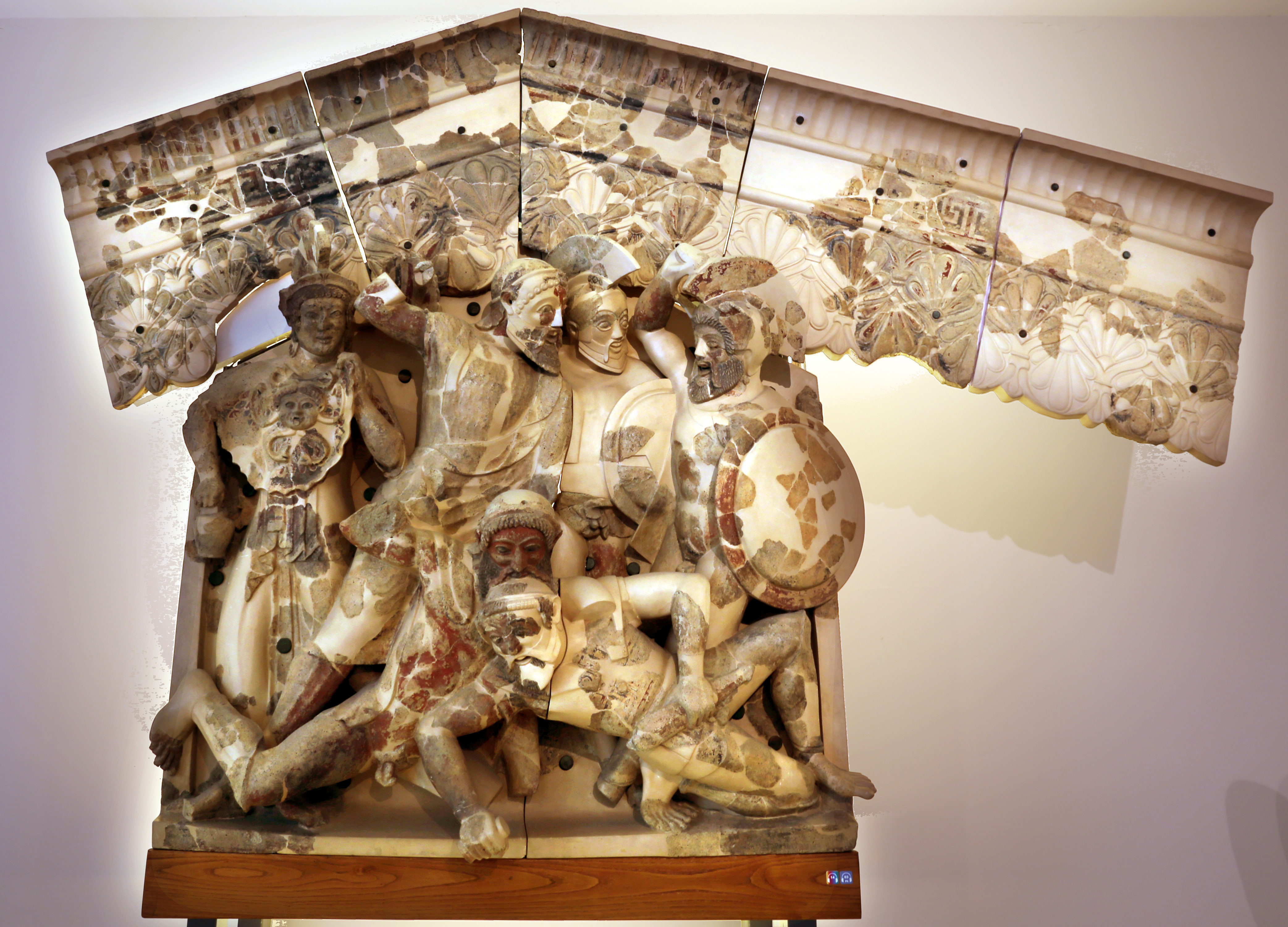 Etruscan warriors, a pediment decoration at Pyrgi, the port of Cervetery, ca.550 BCE.