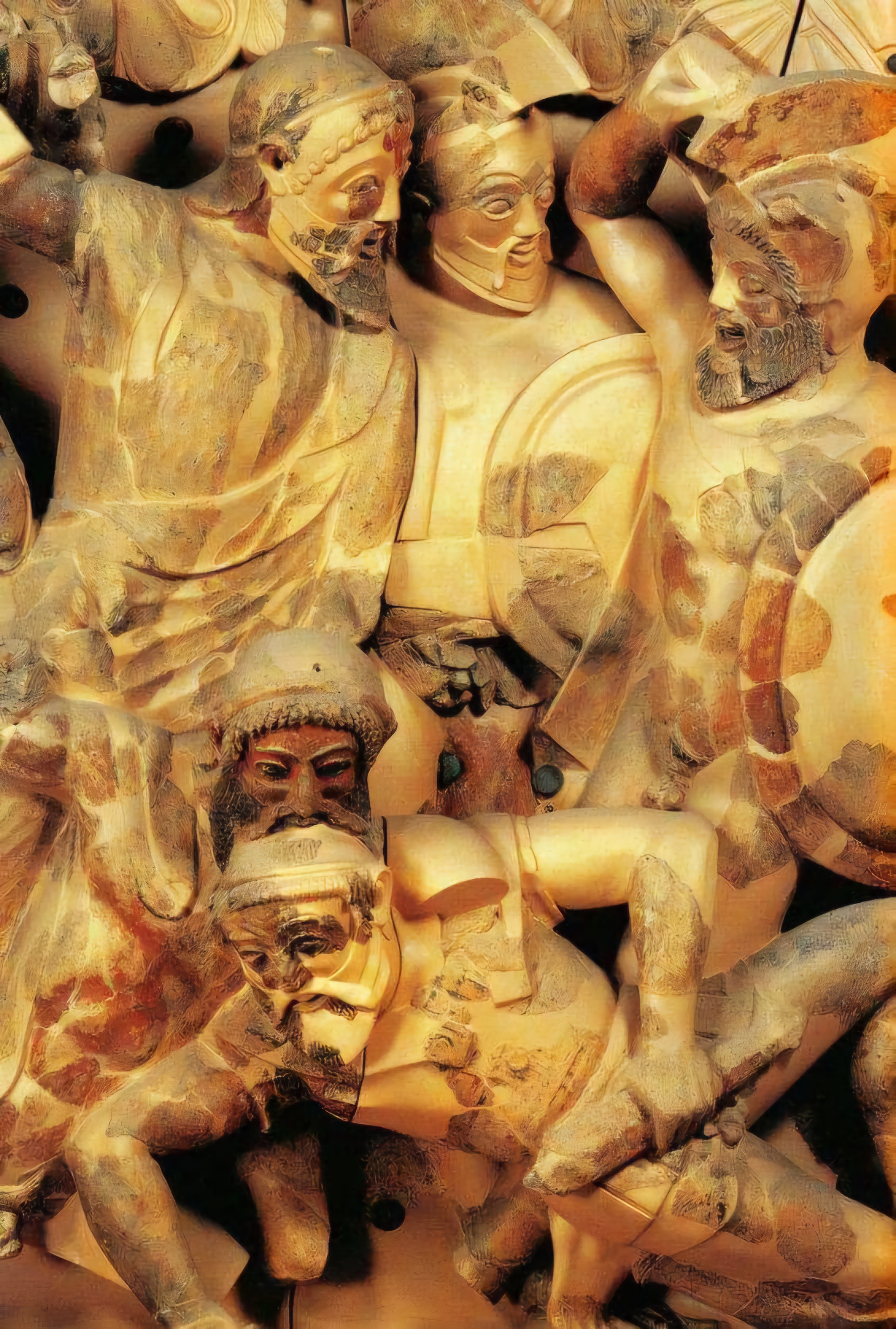 Etruscan warriors, a pediment decoration at Pyrgi, the port of Cervetery, ca.550 BCE.