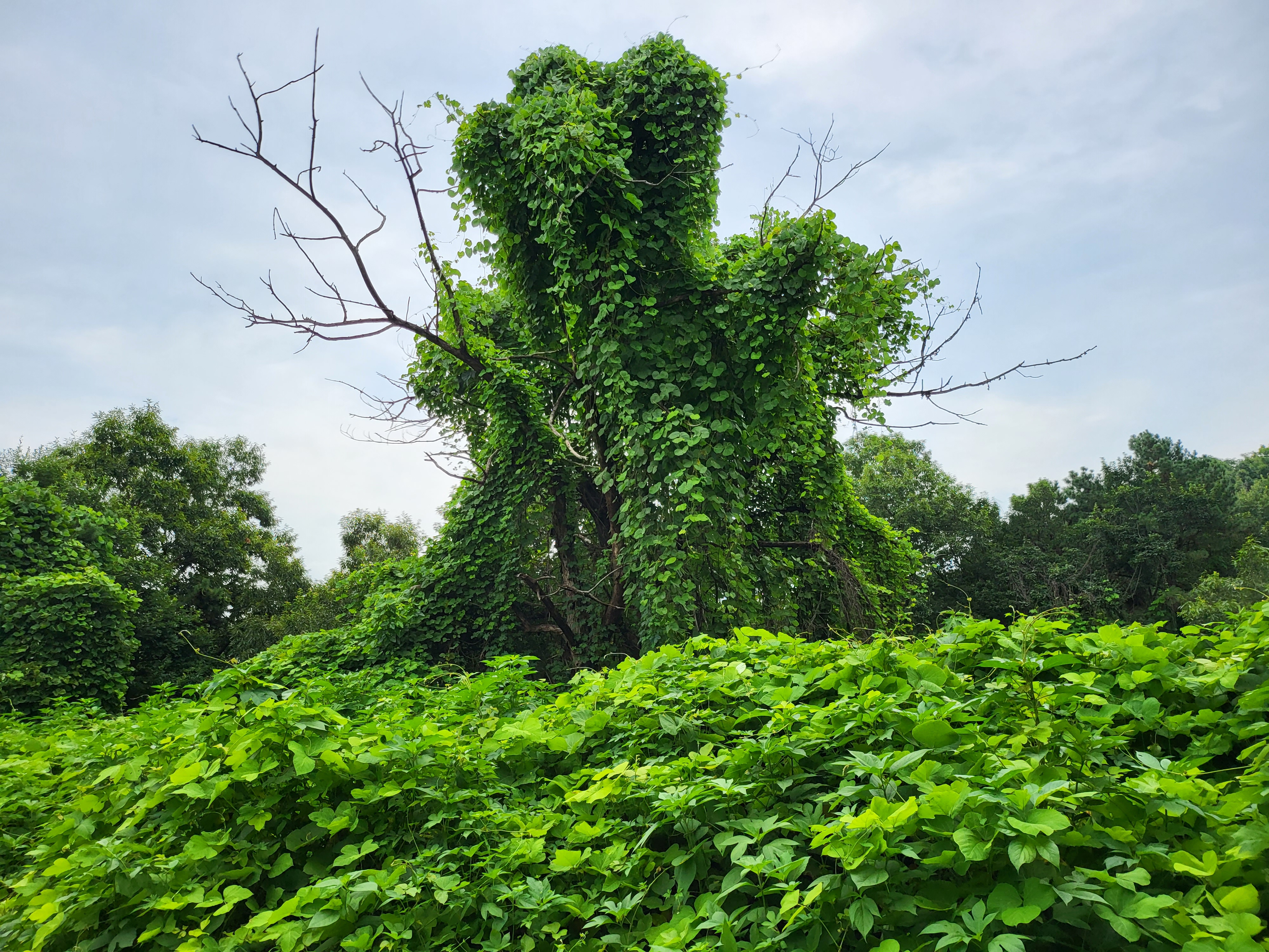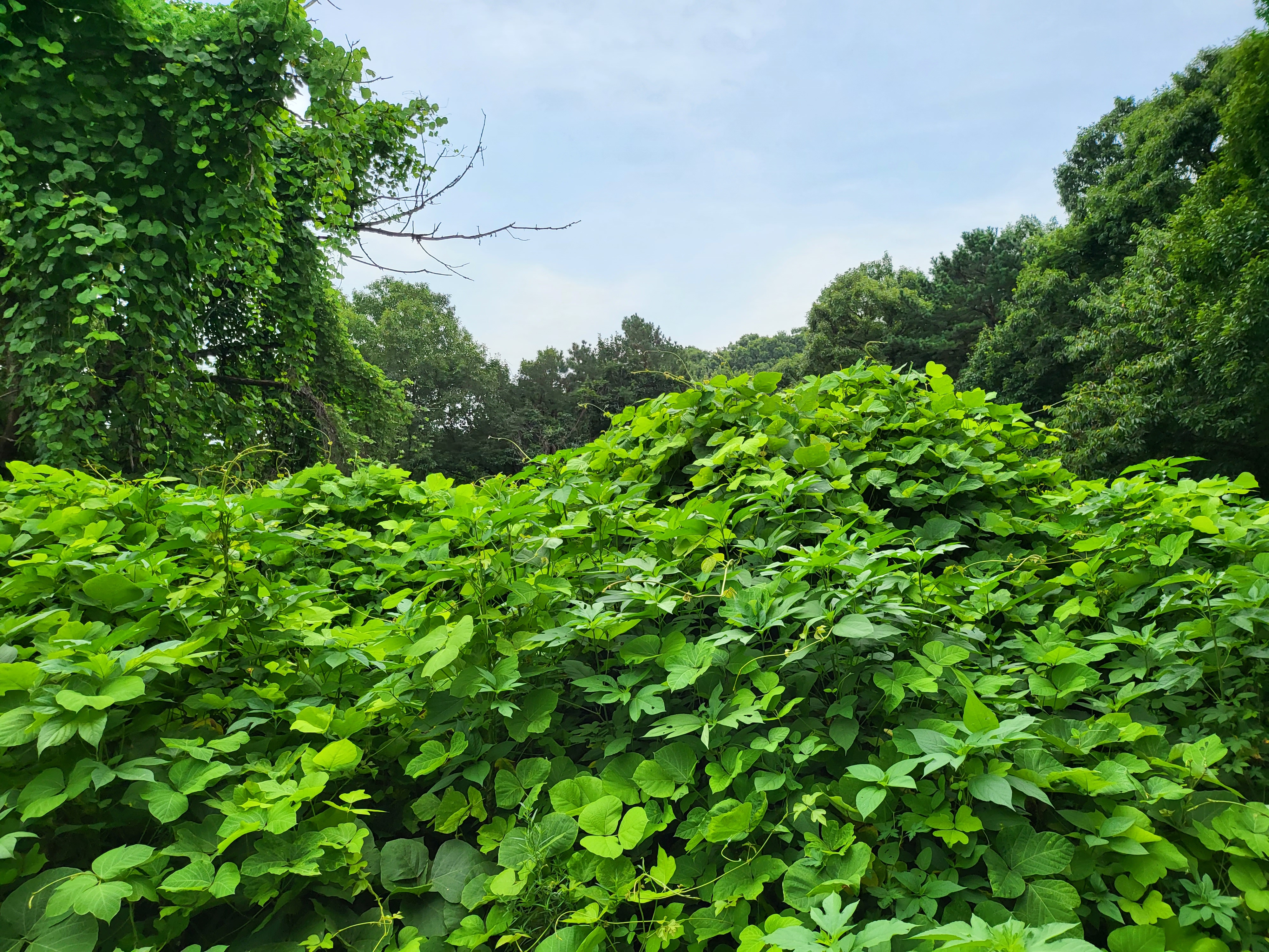 칡넝쿨 천하를 휘어감고 참나무는 더 푸른 늦여름이다.