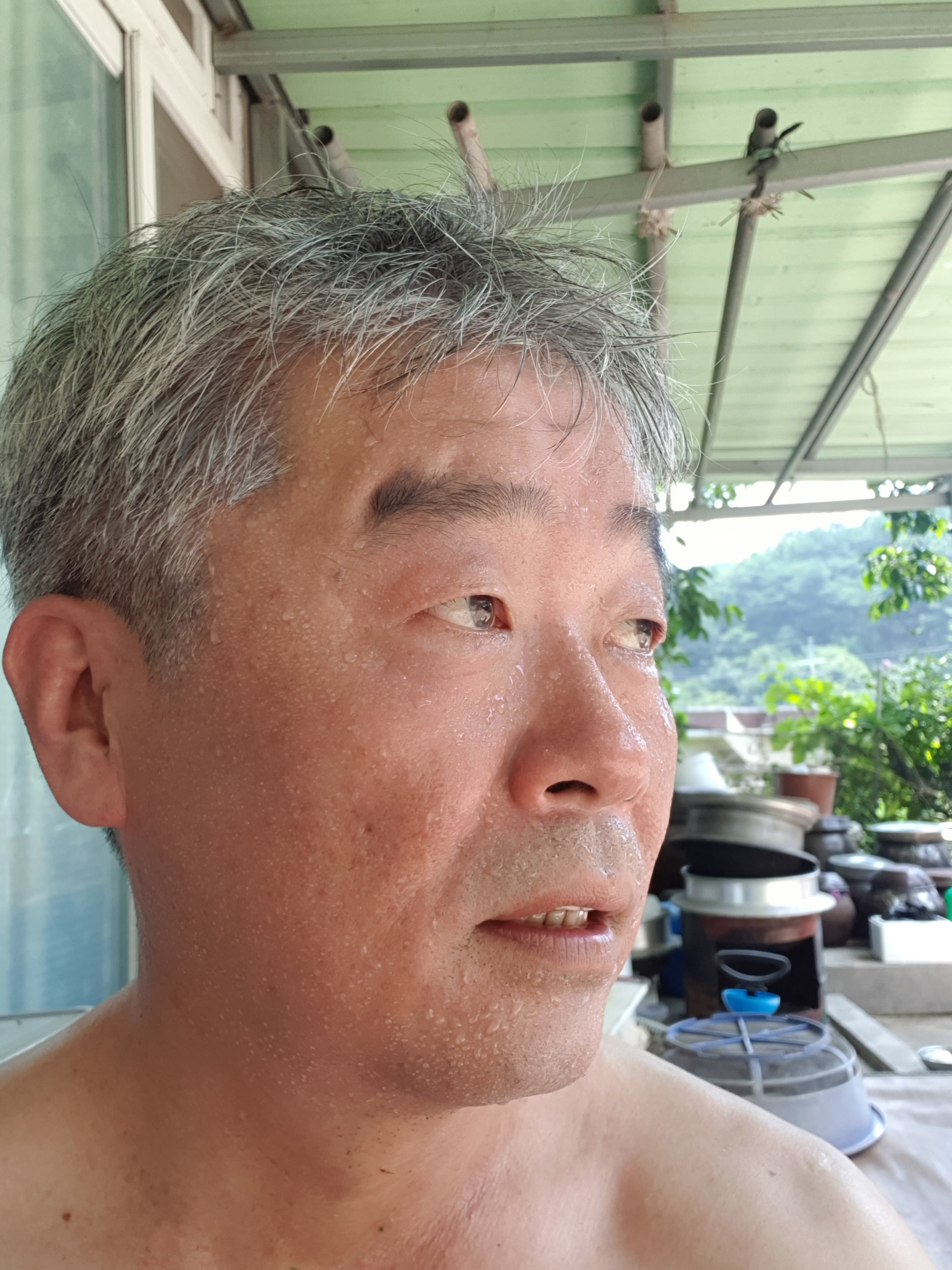 범벅한 땀에 숨이 막혀 귀가하자마자 마당에서 홀라당 벗어제끼고는 이내 찬물을 한 바가지 뒤집어 쓰니 그제야 좀 살 것 같다.