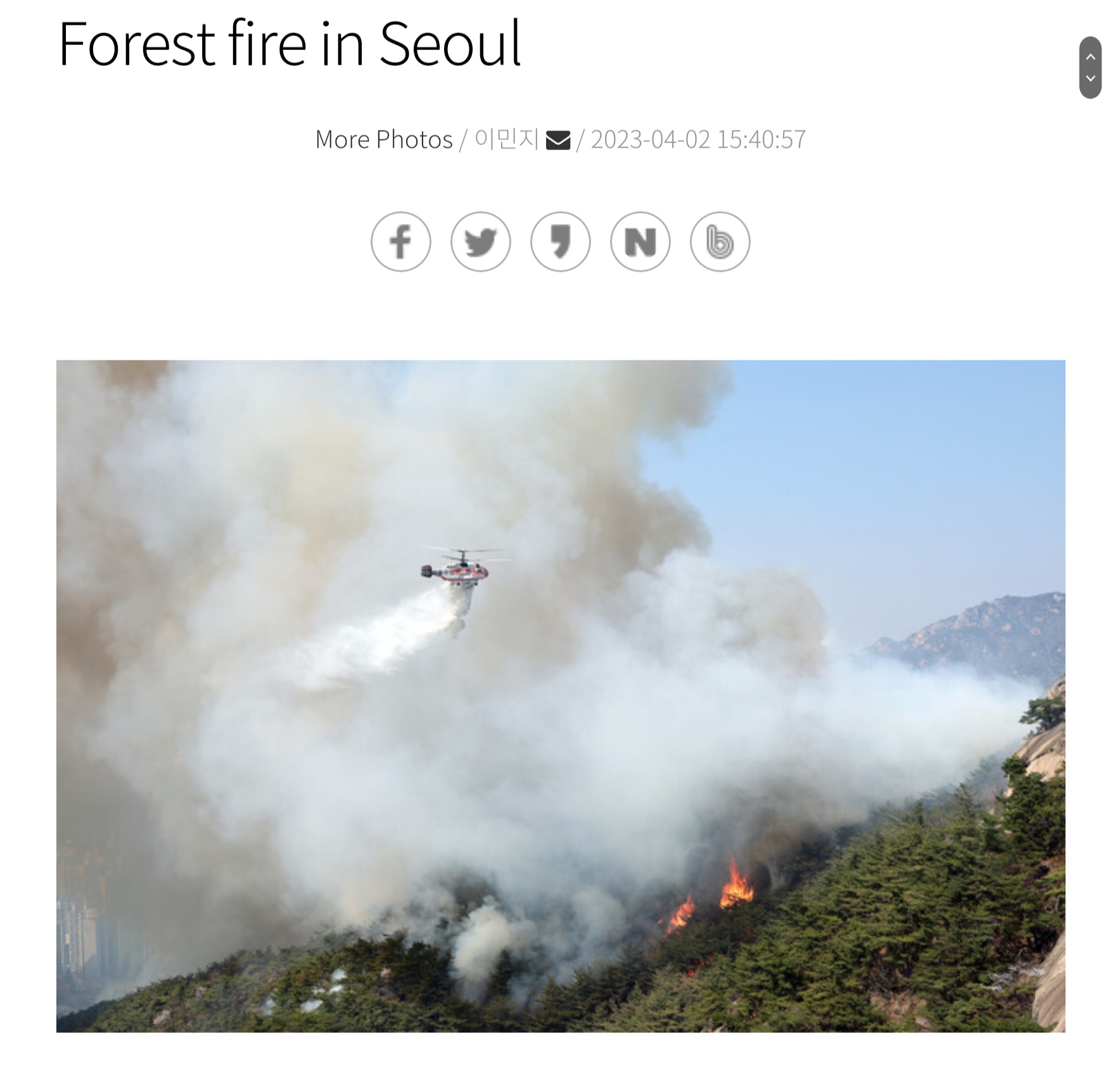 두 군데 다 난리지만 분위기는 사뭇 달라 여의도선 벚꽃 구경 인파로 미어터지고 인왕산은 화마가 덮쳐 인근 주민들까지 대피하는 대소동이다.