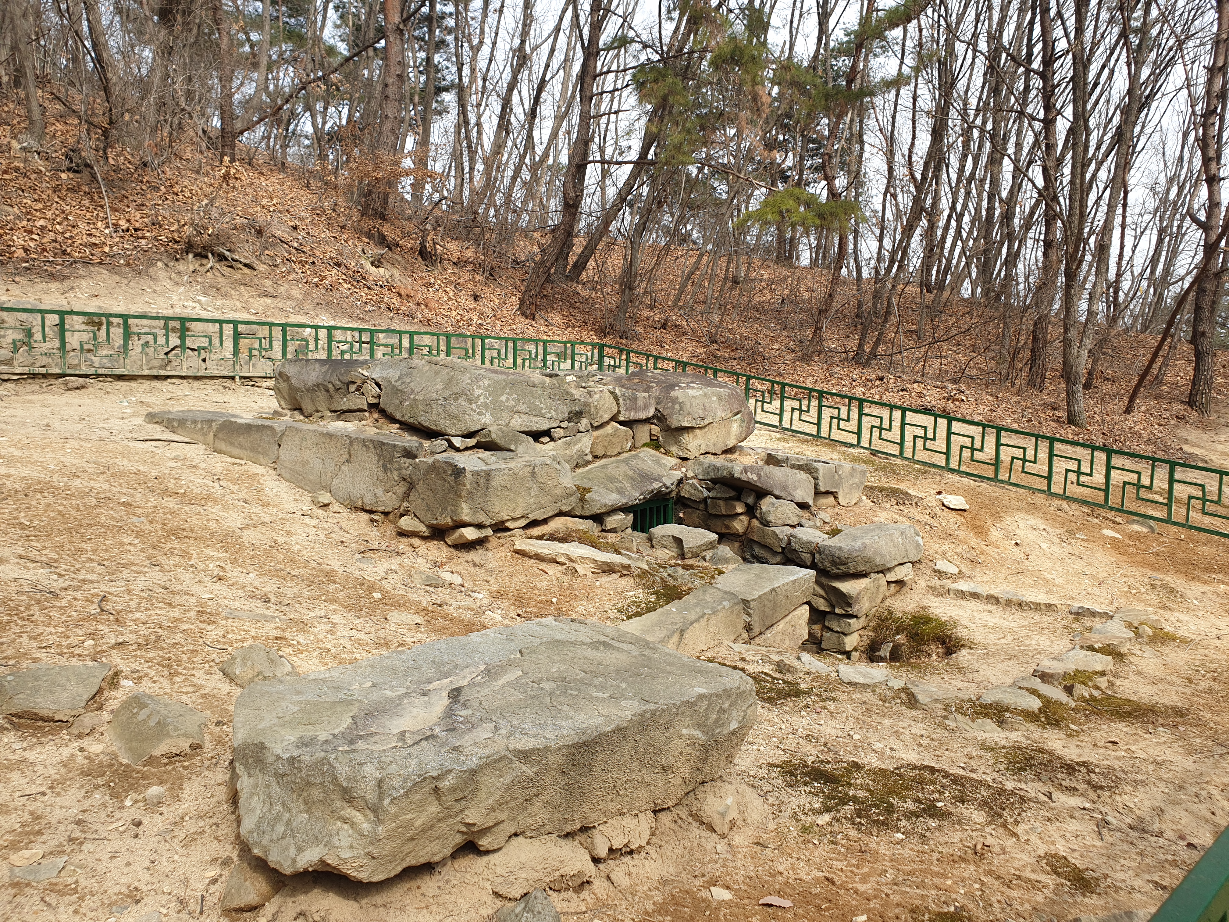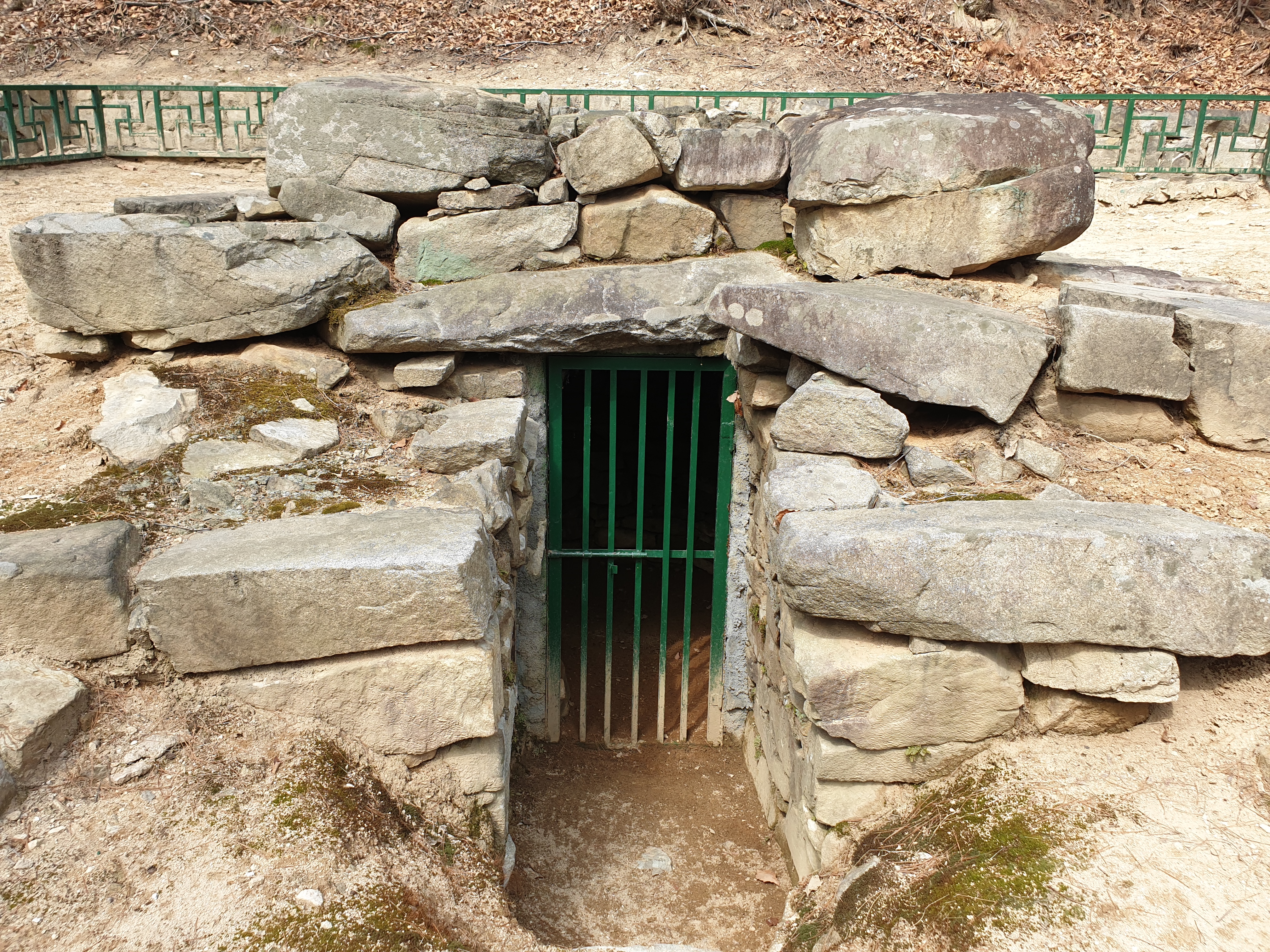 발굴하기 전에는 현실玄室 위쪽 기단부는 완전히 흙에 묻힌 상태였고, 기단 2층과 석실石室 입구 부분에서는 돌만 노출된 상태였다고 한다.