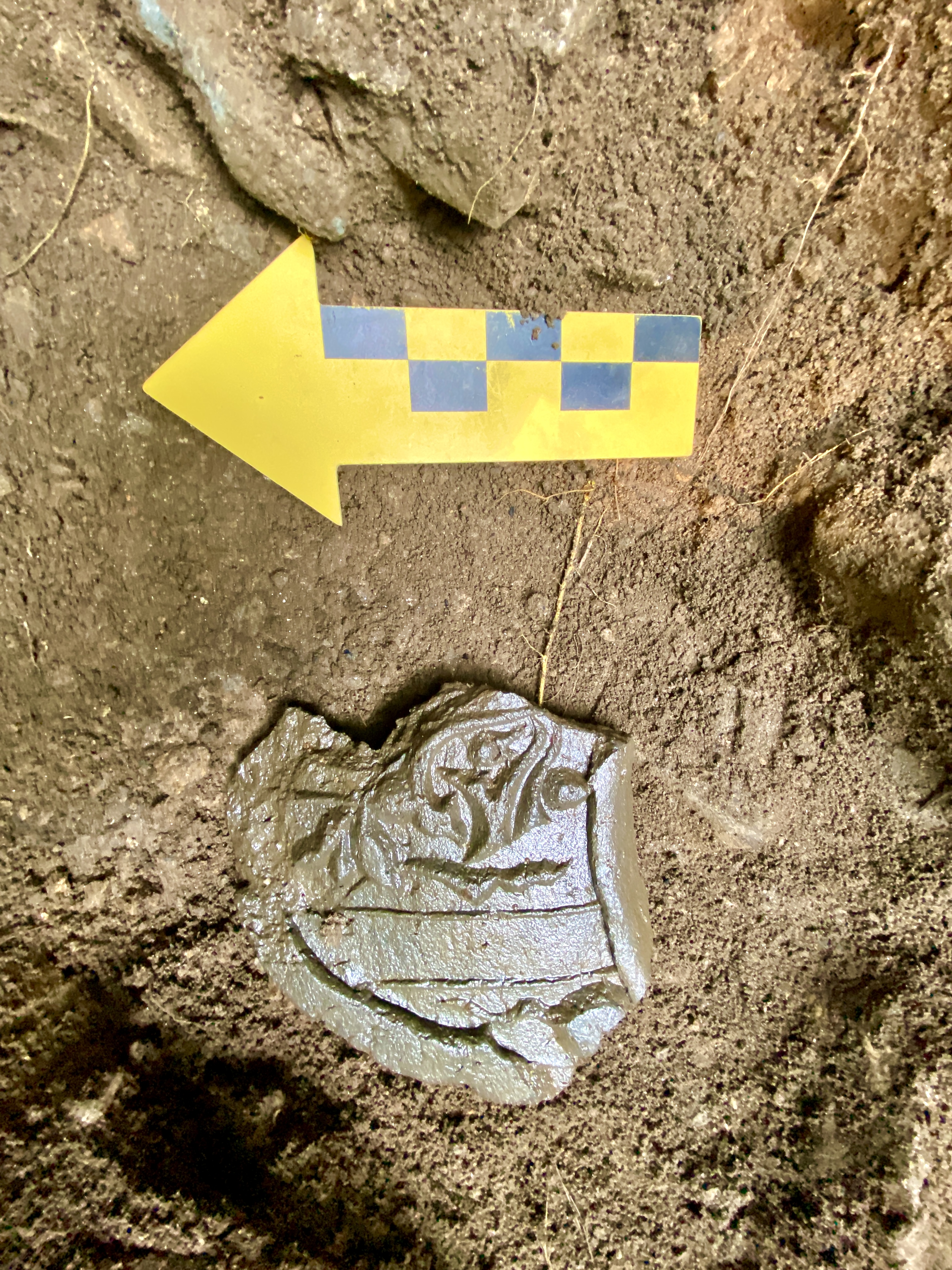 유물은 추정 ‘造瓦以主信’명 기와편, 범자문 암막새편, 백자편, 상평통보 등이 출토되었다.