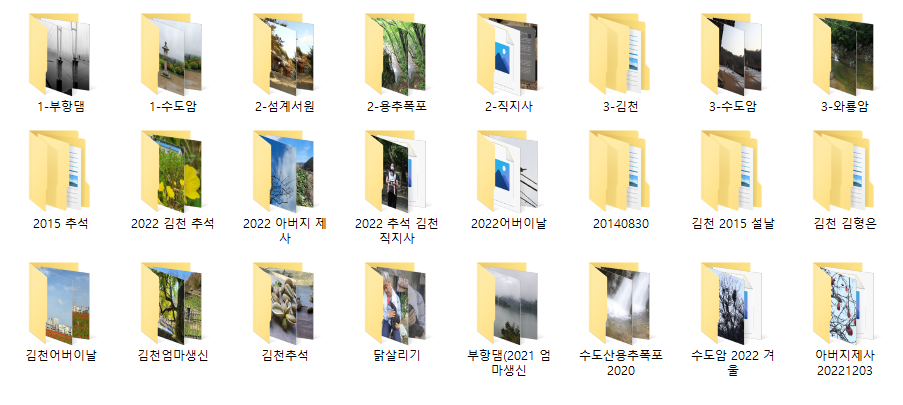 오늘 할 일은 내 일로 미루라는 금언이 직장인들한테 통용하는 절대진리지만, 내가 찍은 사진이나 영상은 그날을 넘기지 말아야 한다는 신조가 있다. 물론 이 자료는 철저히 내 개인 것인 경우에 국한한다. 공용물을 내가 미쳤다고 그리 열심히 차곡차곡 쟁이고 나누어 정리하겠는가?