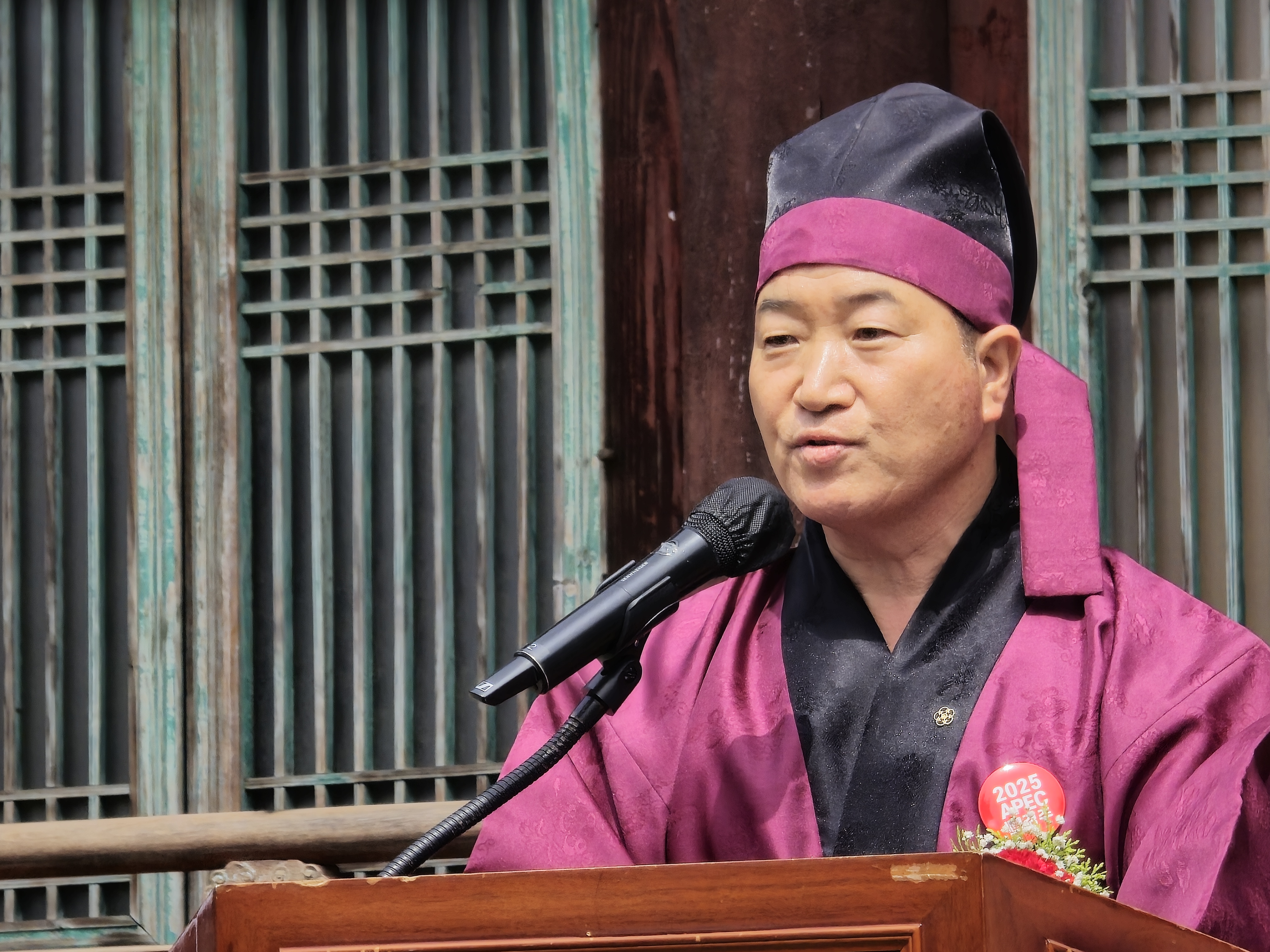 축사하러 나온 주낙영 경주시장이 기가 찬다는 표정이다.