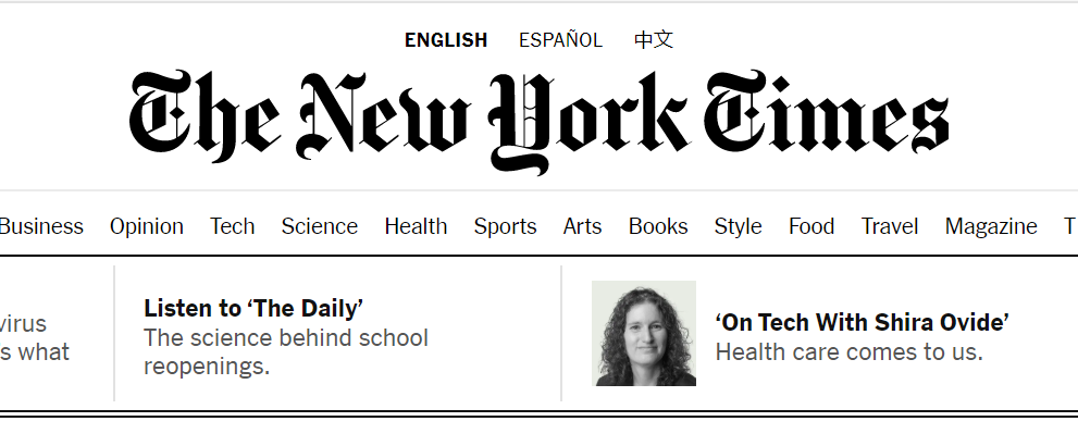 NYT. New York Times 약자라, 이 친구들은 사는 시간이 여러 개라 그런지 신문지 이름에다가 Times를 많이 쓴다.