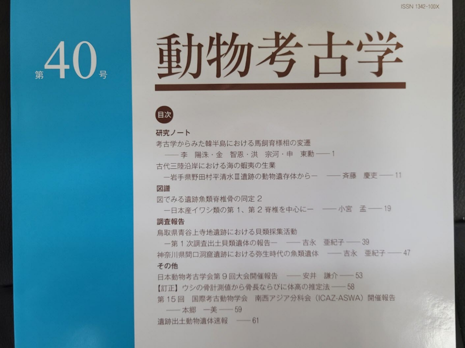 일본 동물고고학회 기관지 "동물고고학" 신간 3월호에 연구실 논문이 실렸습니다.