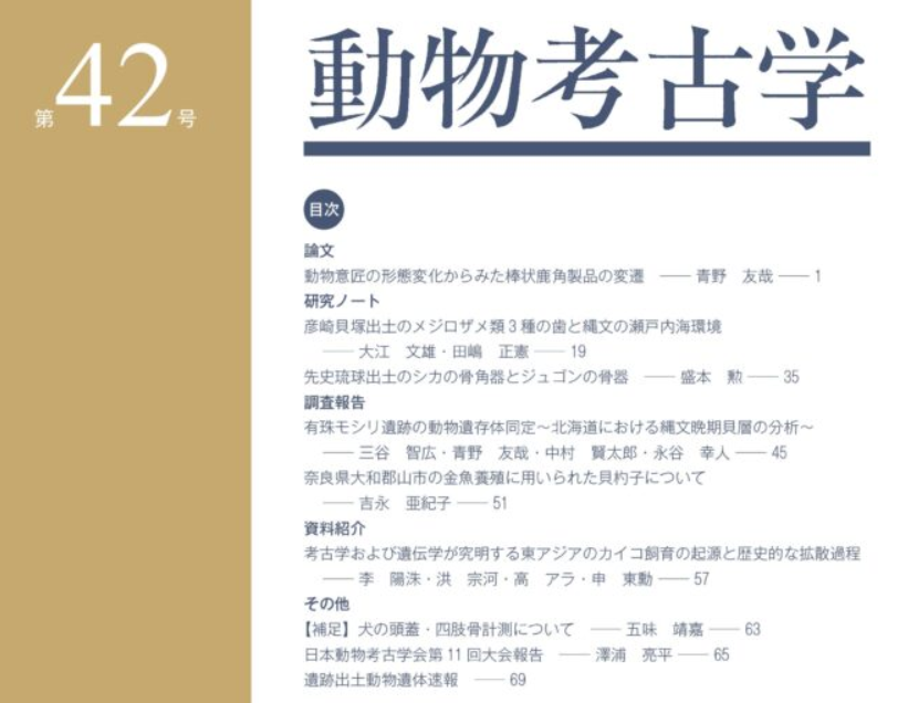 最新の学会誌|日本動物考古学会