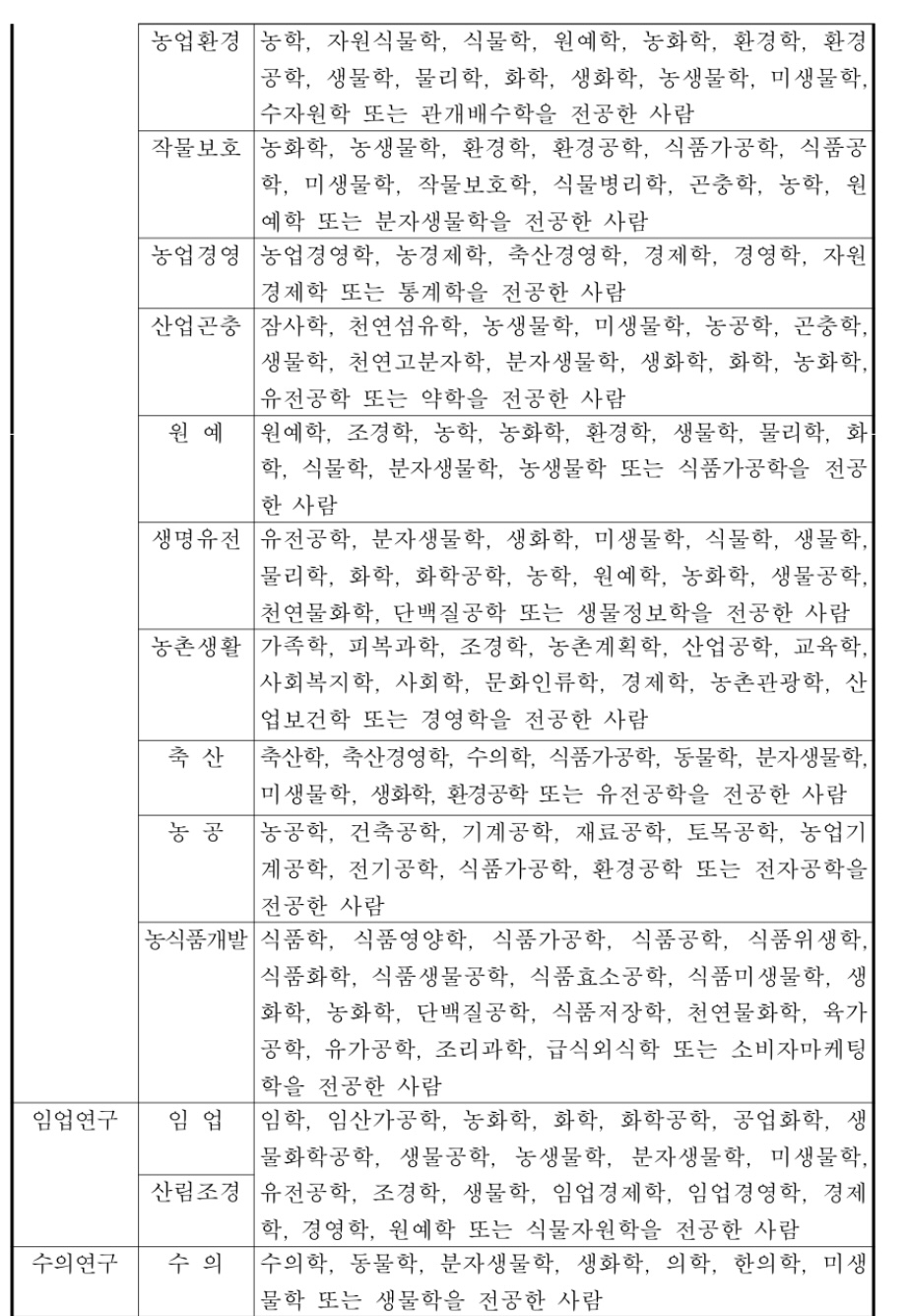 연구직 공무원의 직류에 따라 시험에 응시하는 전공 기준이 별도의 규정에 의한 것이라는 것은 잘 알지 못한다.