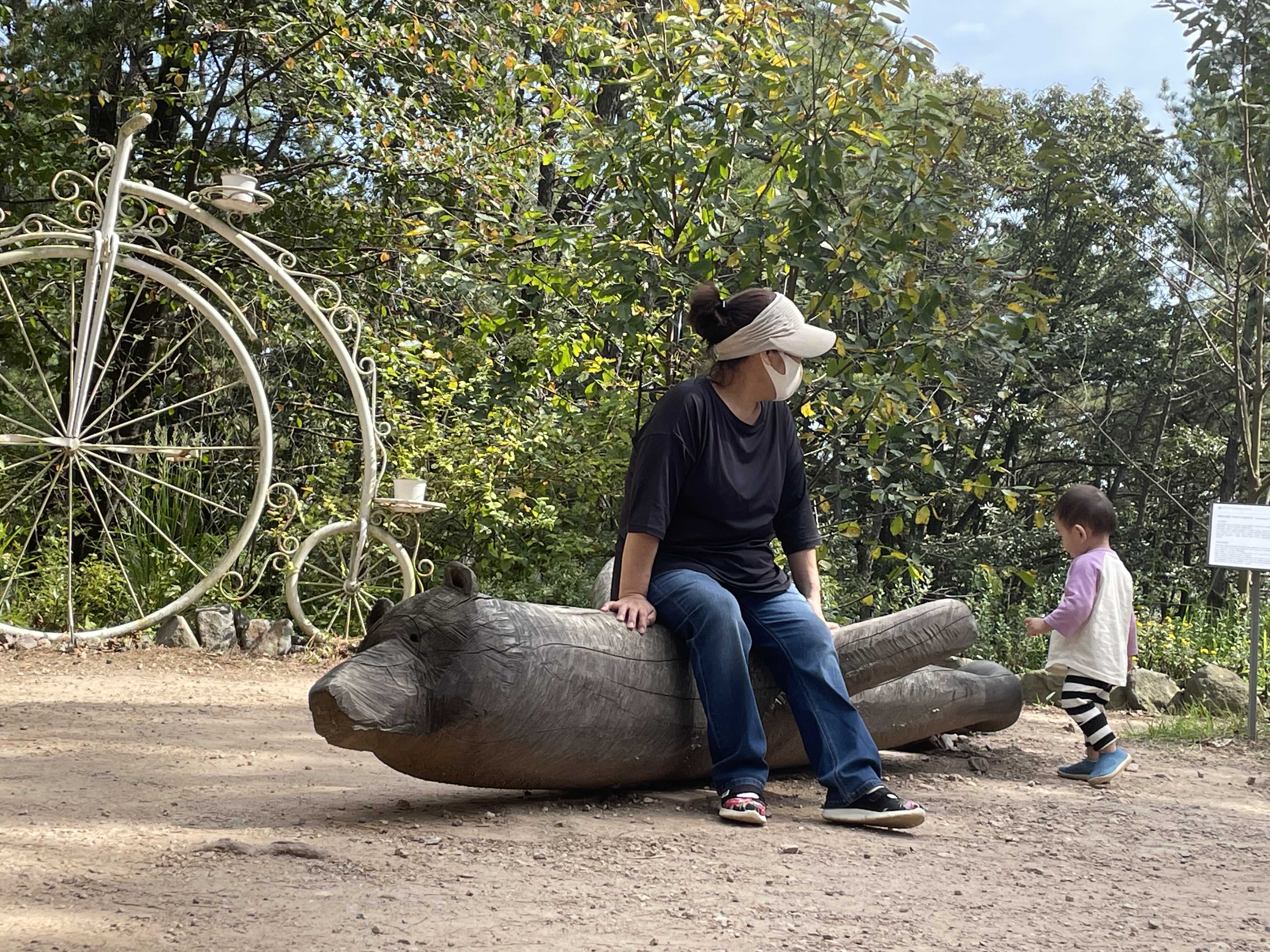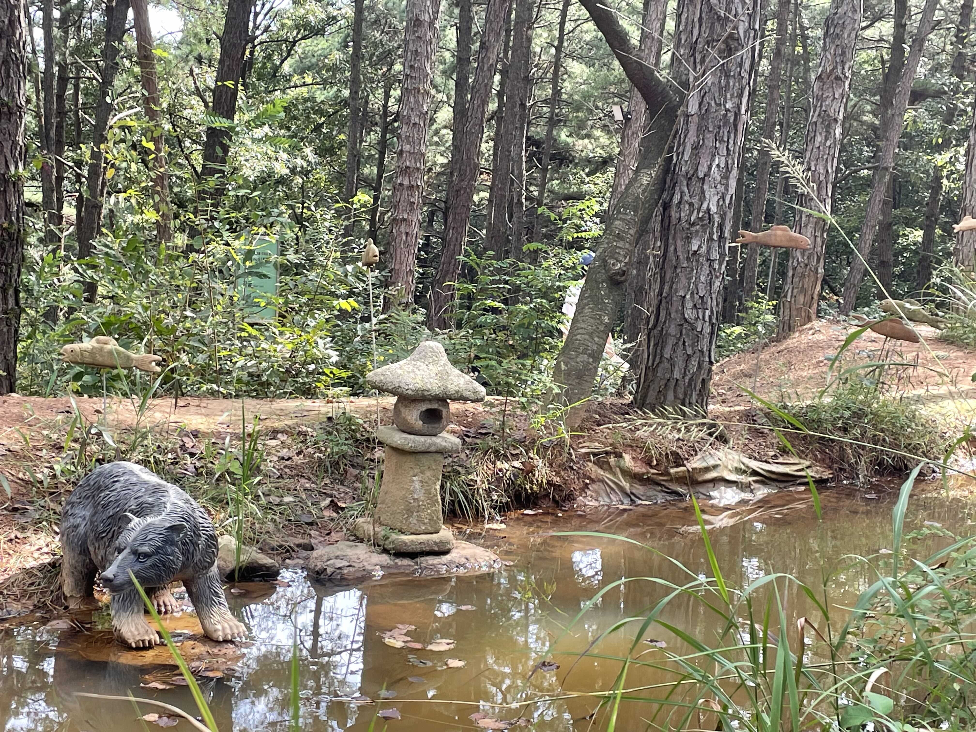 숲속에 설치되어 있는 작품을 보면서 산책하는데, 저희는 약 1시간 정도 걸린 것 같습니다.