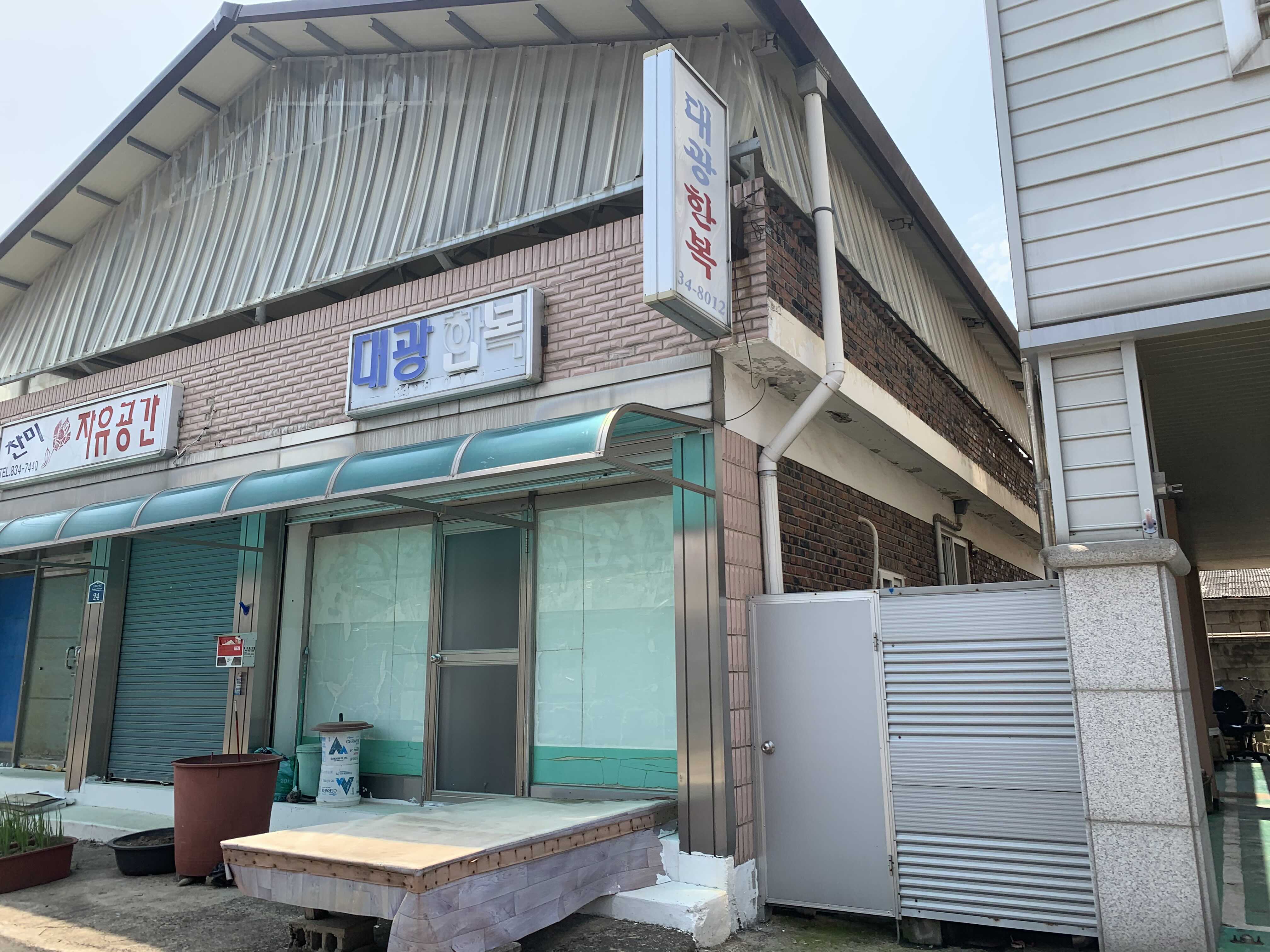 식사를 한 막국수집 바로 옆옆 건물에 대박부동산집 건물이 있습니다.