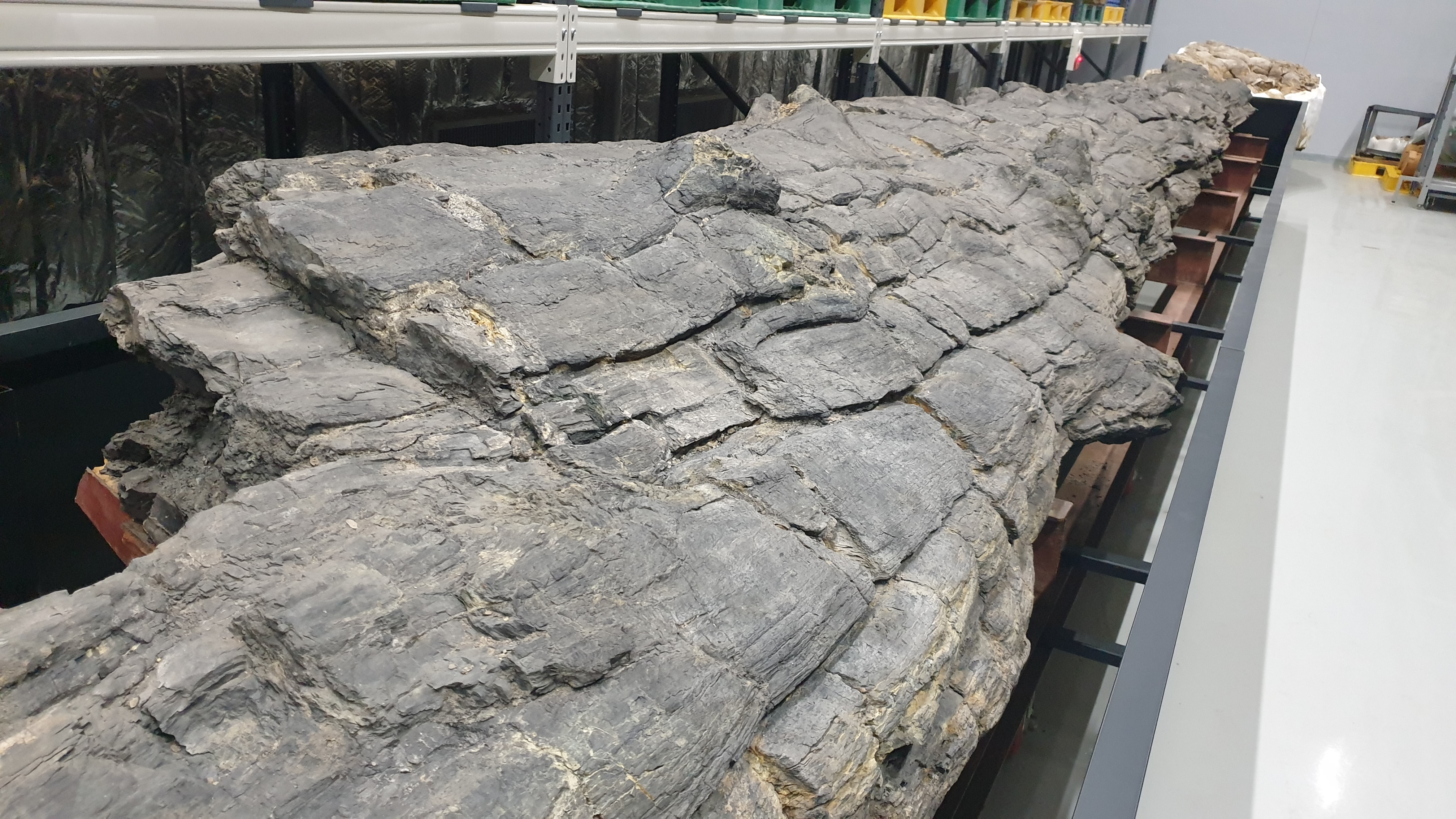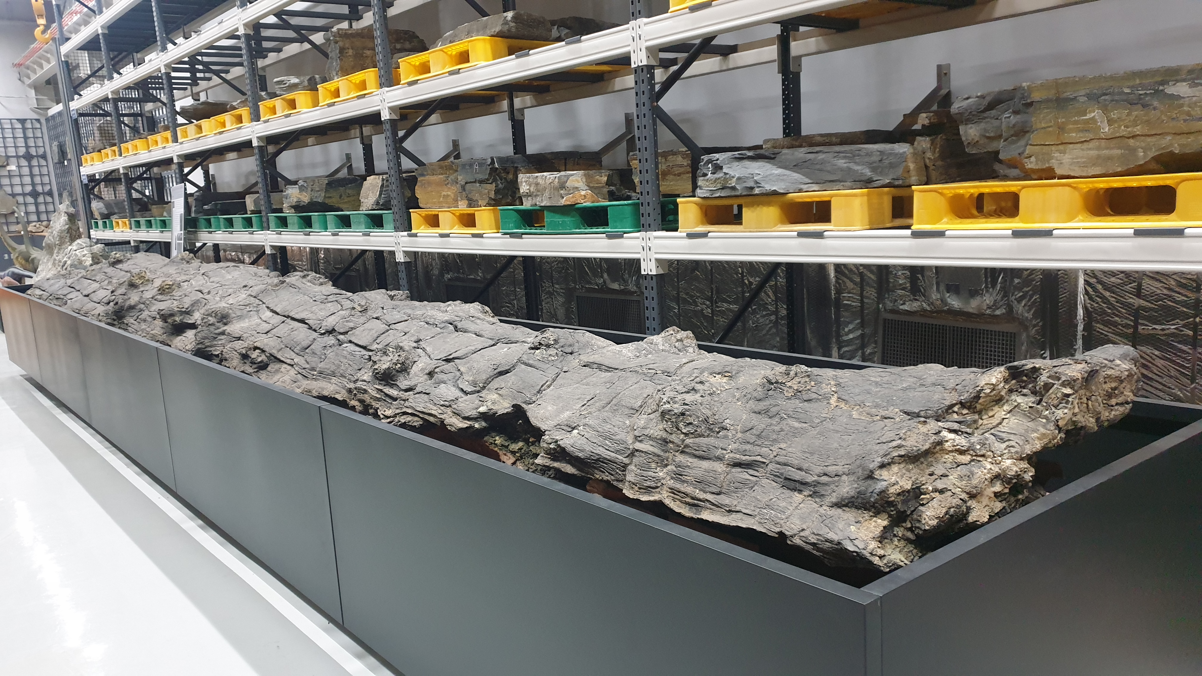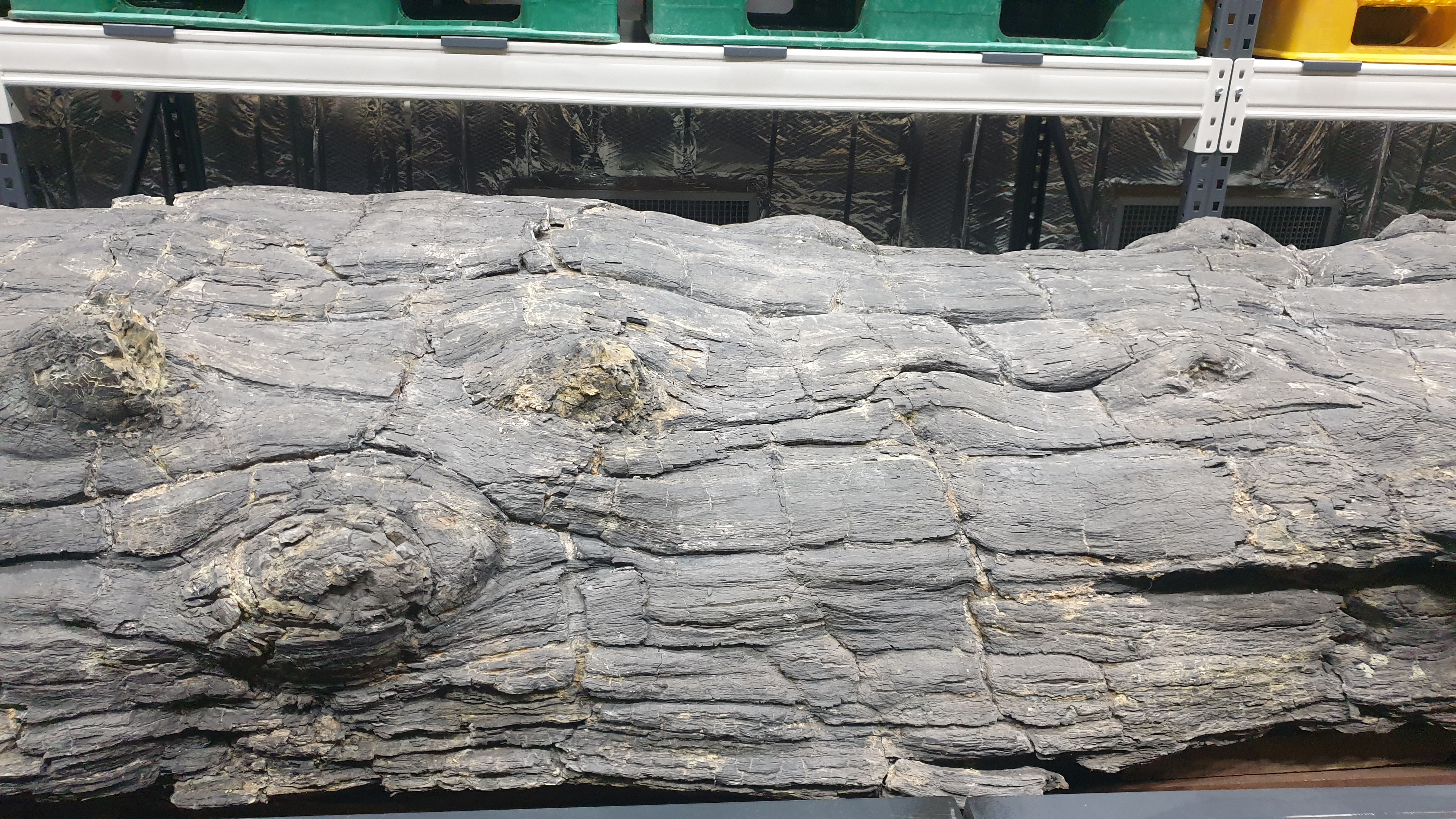 그 무렵 천연기념물센터에서는 재일동포가 기증한 맘모스 뼈 복원이 한창이었고, 그 홍보에 열을 올릴 때라, 그 무렵 대전을 내려간 나는 그 천기센터 직원들 안내로 수장고를 둘러보다가 저 나무화석을 발견하고서는 "잉? 맘모스 화석보다 이 나무화석이 중요해 보이는데??" 했으니, 내가 그리 반응한 이유는 첫째 저 발굴소식 자체를 접한 적이 없었고 둘째 그 보존상태의 완벽성과 그 규모 때문이었다.