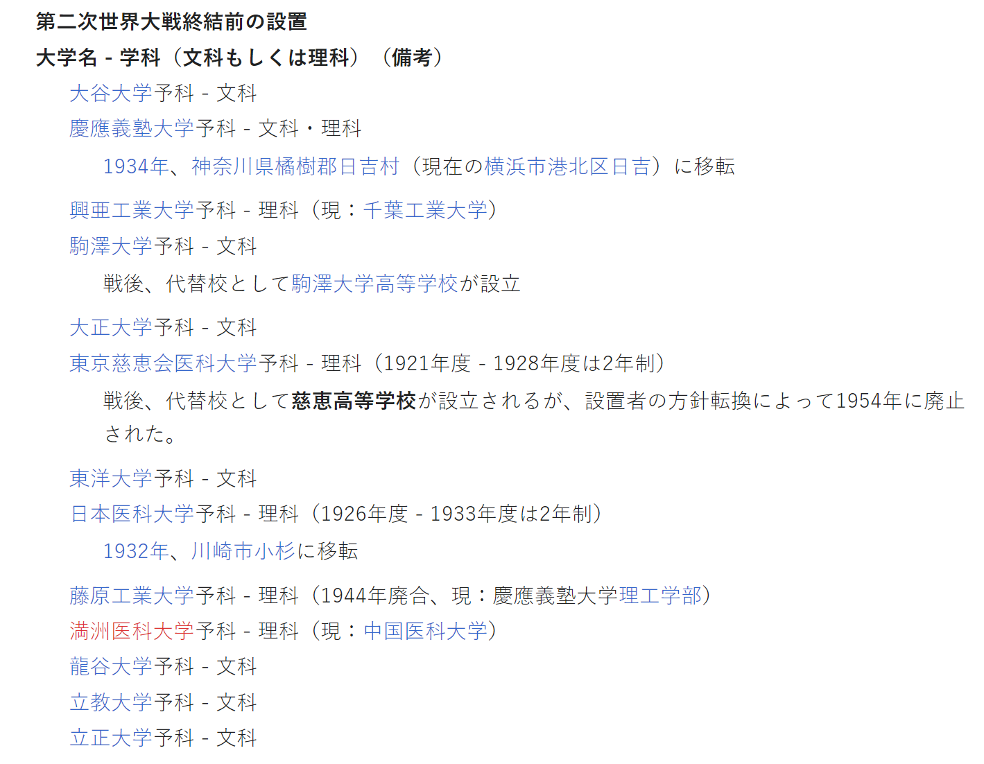 일본에서는 1919년 대학령 발효 이후 전문학교가 대학으로 많이 승격했다.
