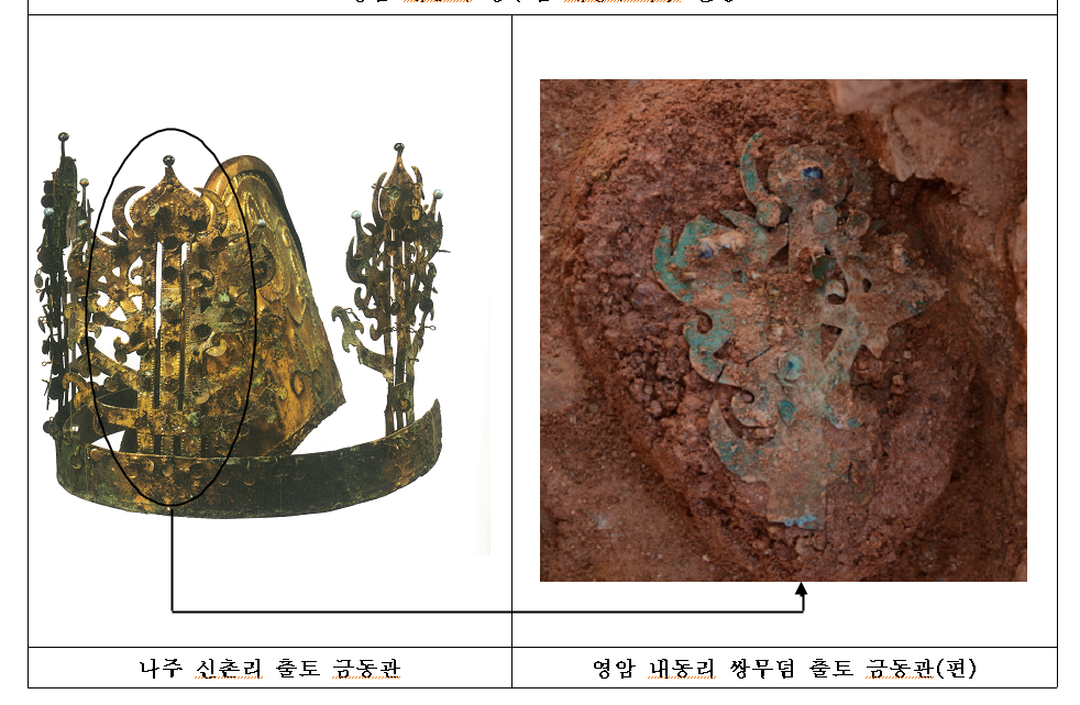 전남 영암 내동리 쌍무덤서 마한시대 금동관 출토, 조근영기자, 문화뉴스 (송고시간 2020-04-21 13:37)