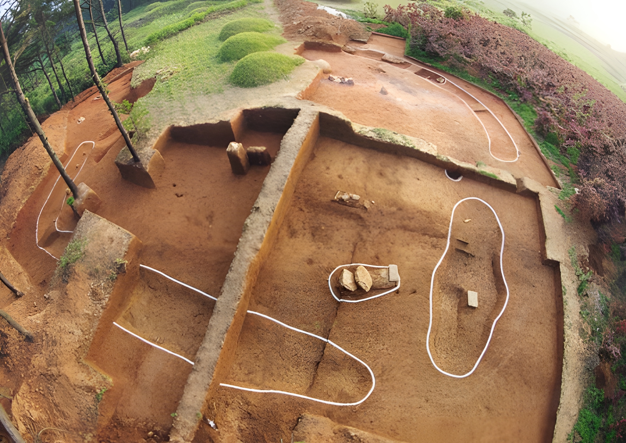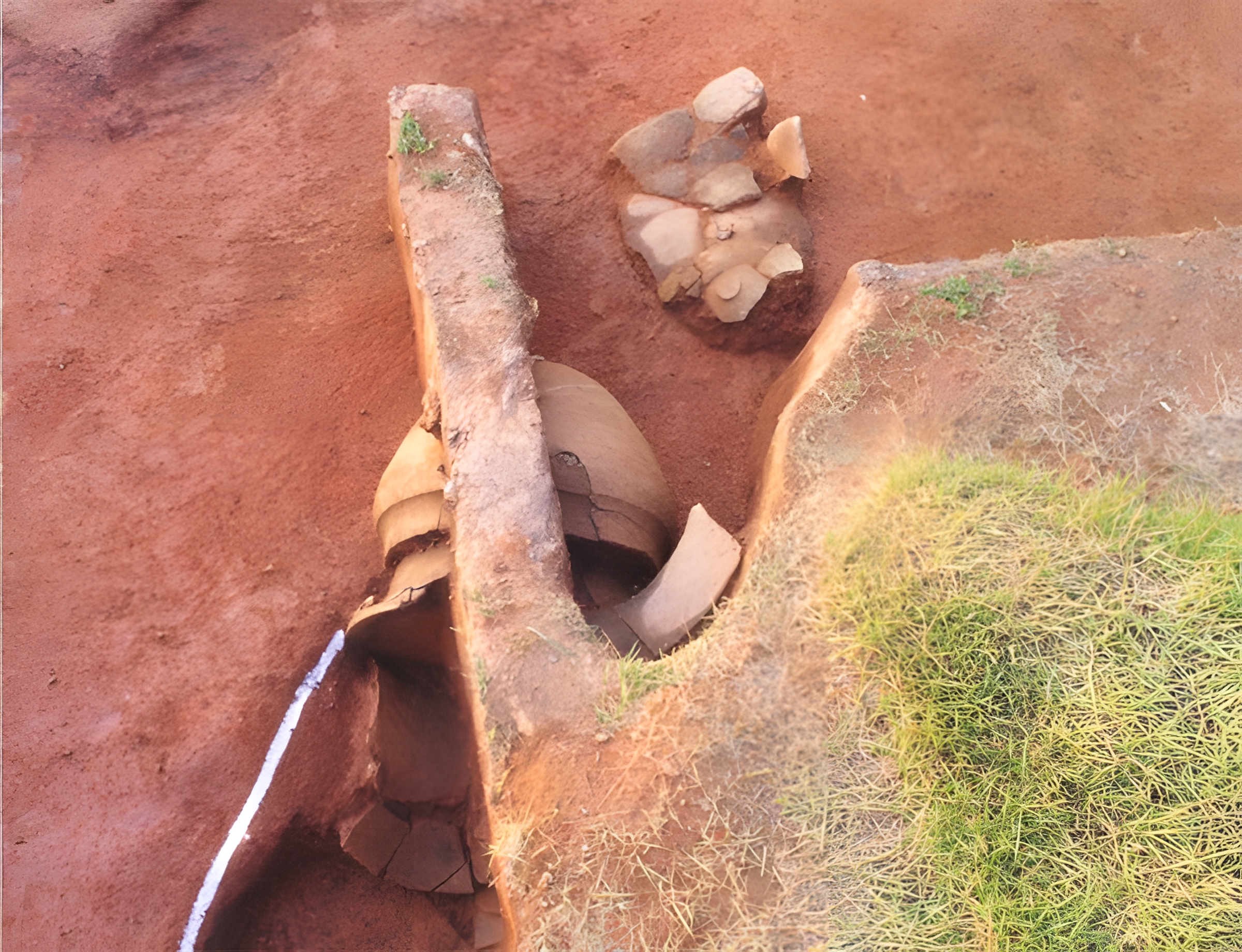 낮은 언덕 능선에 팬 예비군 참호의 단면을 정리하다보니 주둥아리를 맞댄 옹관묘가 확인되는 것이 아닌가.