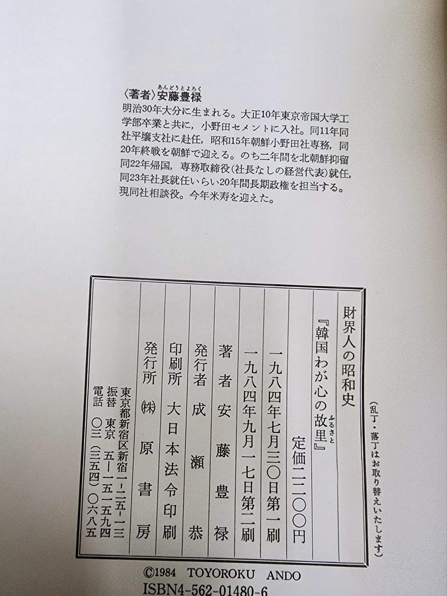 초점은 시멘트가 아니고 당시 오노다시멘트의 중역(전무)으로서 조선 내 시멘트 생산을 책임진 인물로 훗날 사장까지 역임하는 안도 도요로쿠(安藤豊祿, 1897~1990) 이야기를 하려 한다.