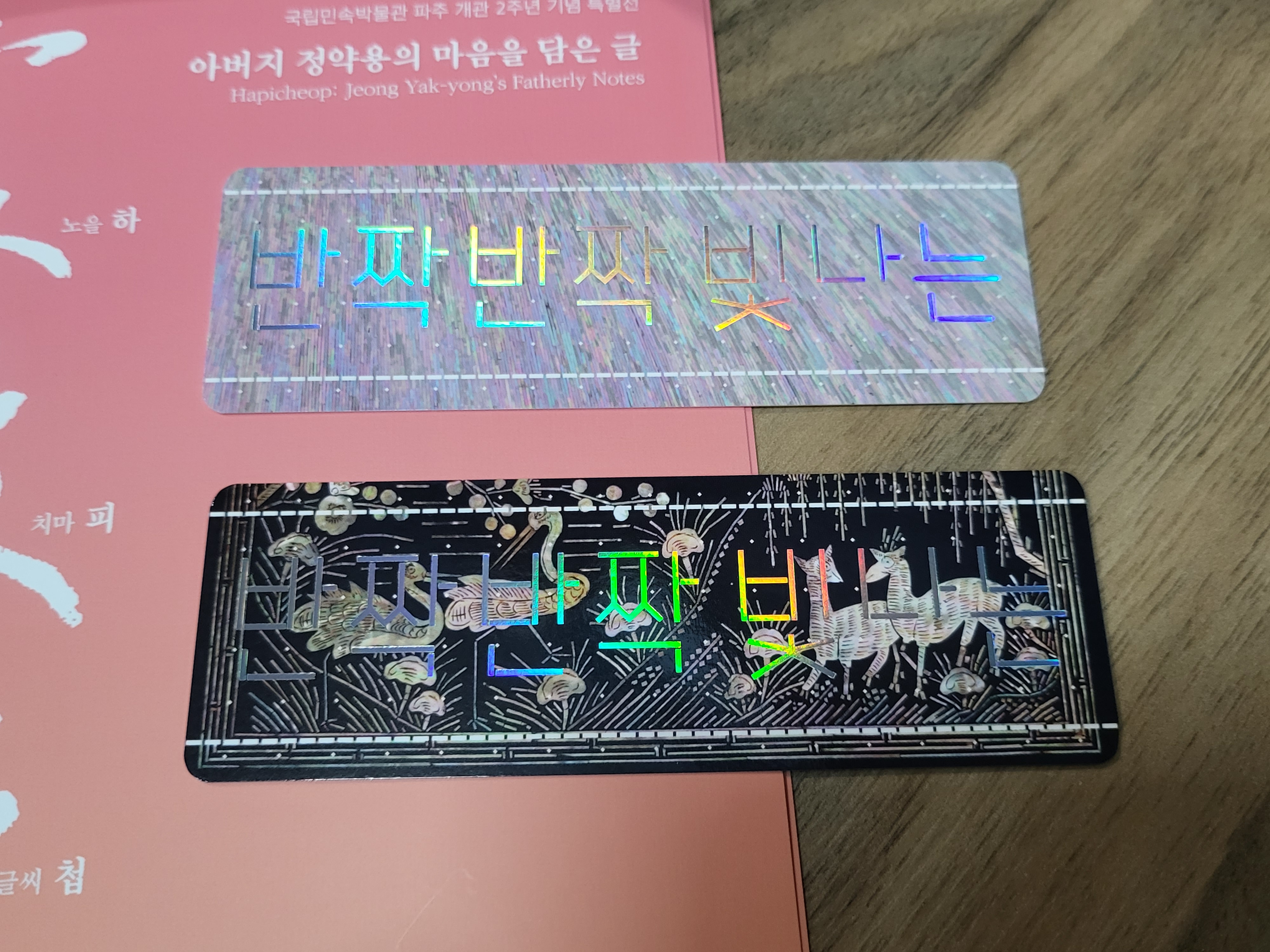 이 반짝반짝 빛나는 은 파주관 특별전시 제목이라 책갈피도 가져가라 꽂아놨는데 1인 1장이라 했지만 뭉탱이로 집어왔다.