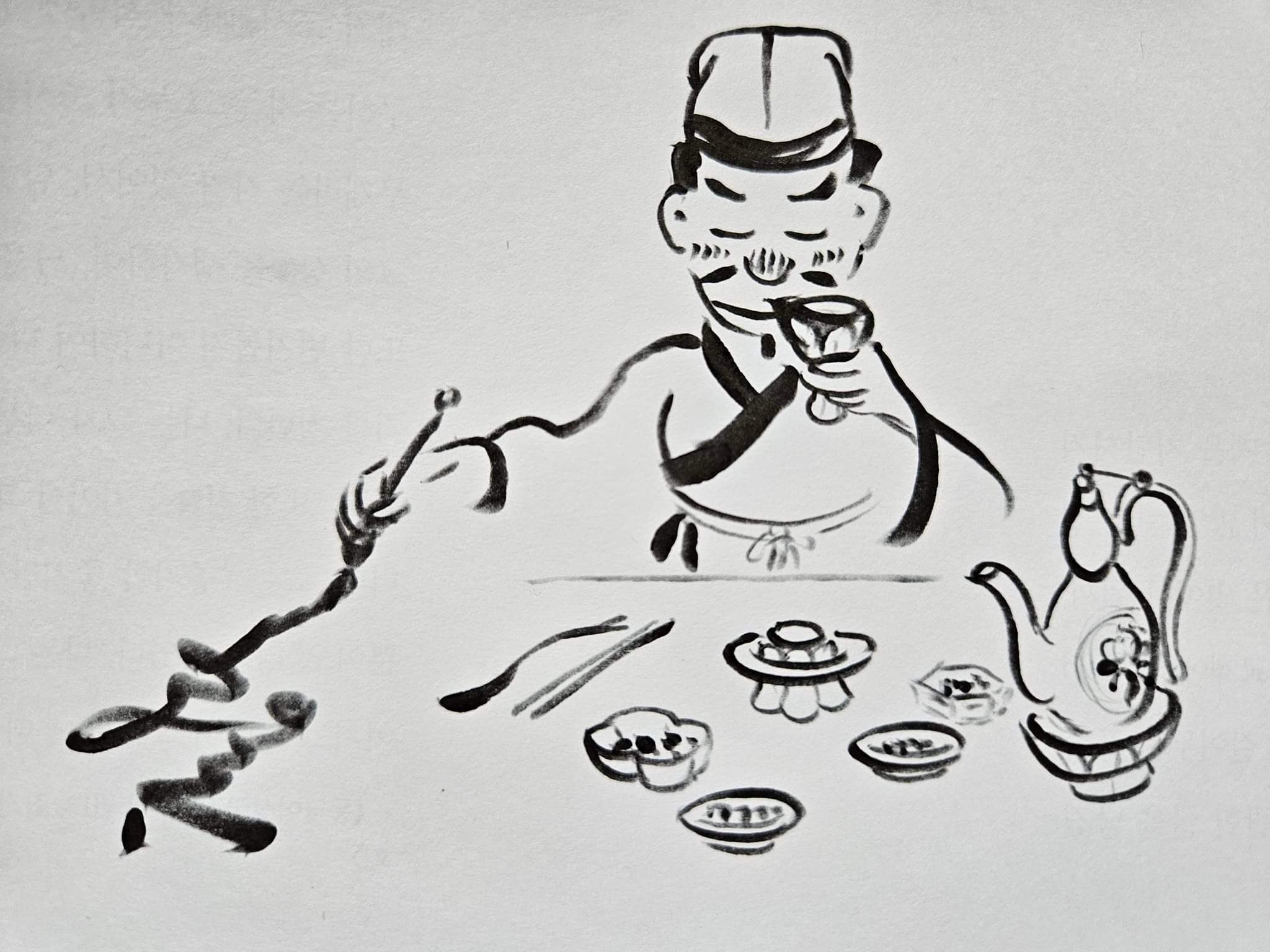 한 손에 술잔 들고