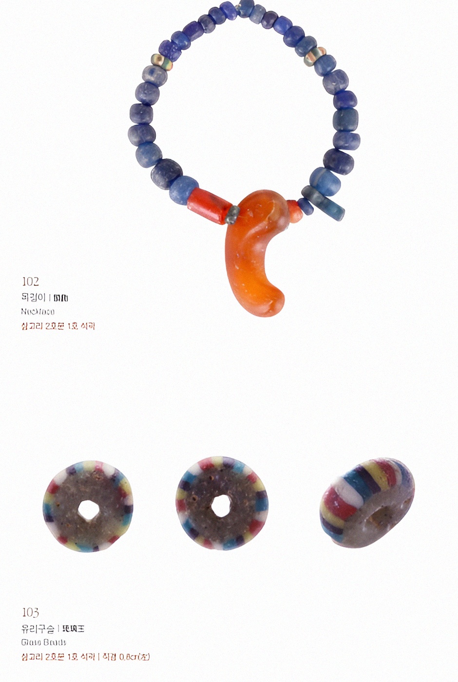 다만 앞서 소개한 대로 이곳 출토 성과 중 이른바 오색옥五色玉이라 해서 다섯 가지 색깔을 입힌 유리 제품이 있어 그것과 관련한 사항들을 정리하고자 한다.