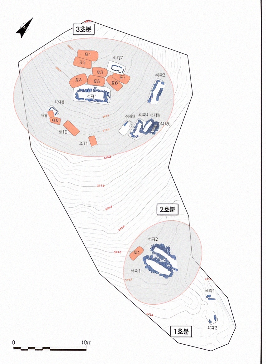 이 무덤은 막상 까 보니 매장시설로 석곽묘 두 곳과 토광묘 하나인 곳으로 밝혀졌다.