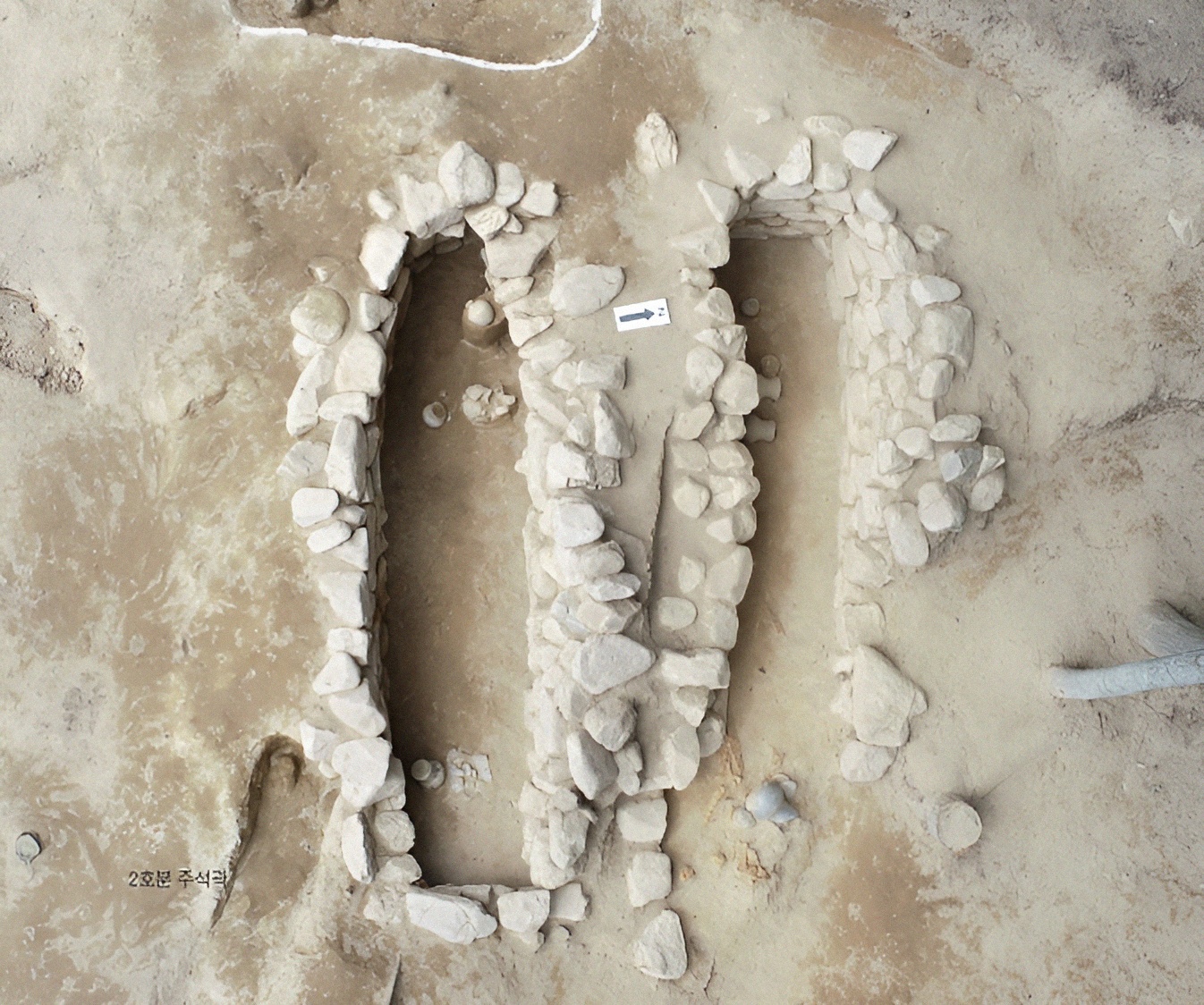 2호 석곽은 환두대도 손잡이가 동쪽에 놓이고 칼 끝이 서쪽을 향한 상태로 가지런히 놓여있어