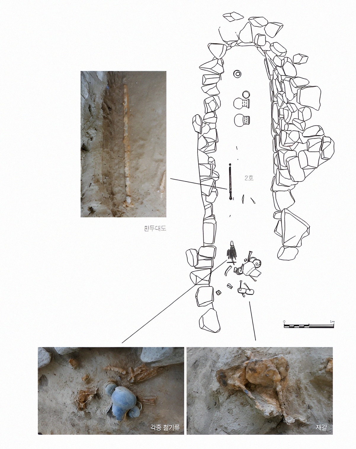 2호 석곽은 환두대도 손잡이가 동쪽에 놓이고 칼 끝이 서쪽을 향한 상태로 가지런히 놓여있어