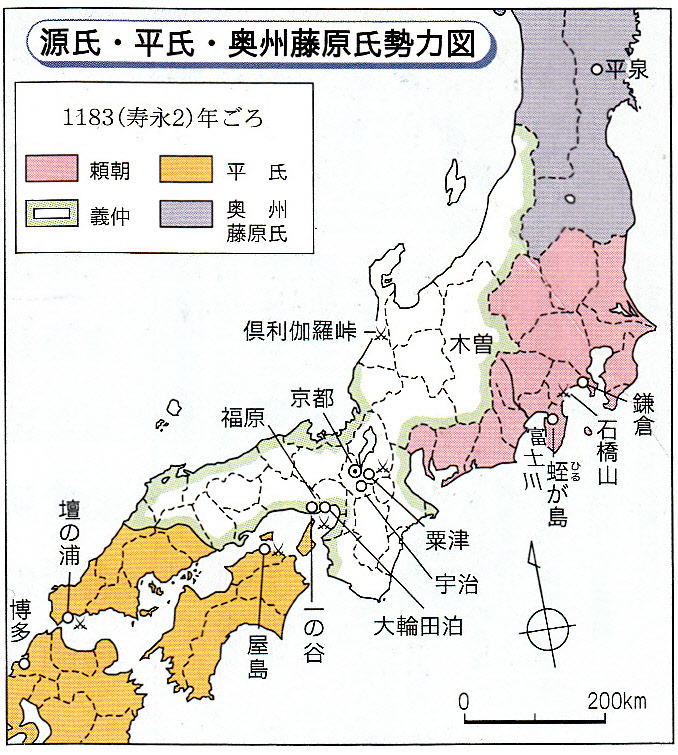 바로 위, 겐페이 합전 당시 양측에 가담한 자들의 세력권을 보면 알겠지만,