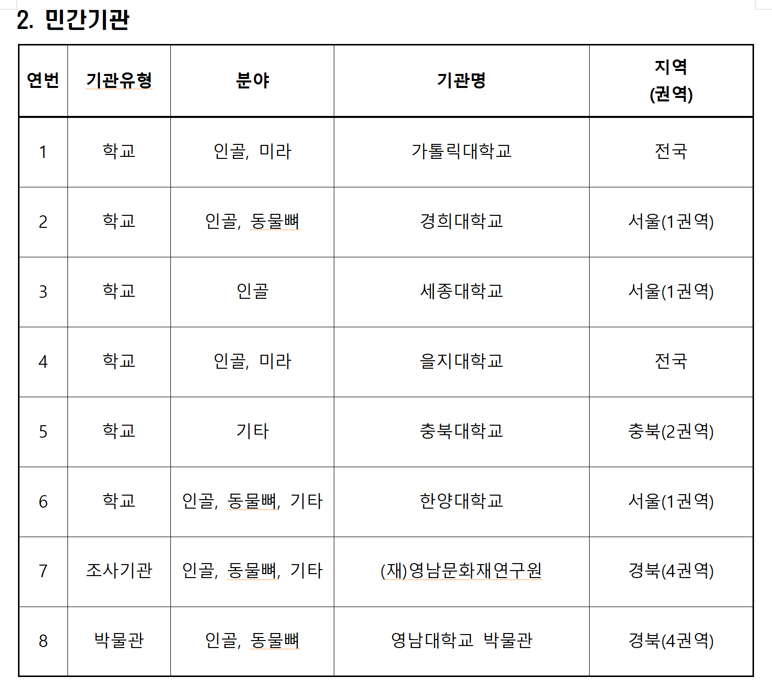오창석 교수의 을지대와 홍종하 교수의 경희대가 문화재청 선정 중요출토자료 전문기관이 되었습니다.
