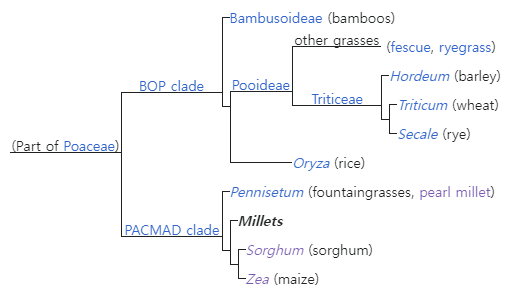 기장과 수수가 옥수수와 상당히 가까운 관계이기 때문이다.